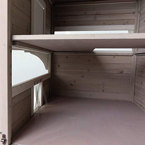 • WOODEN CONSTRUCTION: Get ready for the ultimate in indoor/outdoor cat houses! This 3-story house offers multiple doors and windows with metal latches, providing your cat with endless fun ways to play and hide