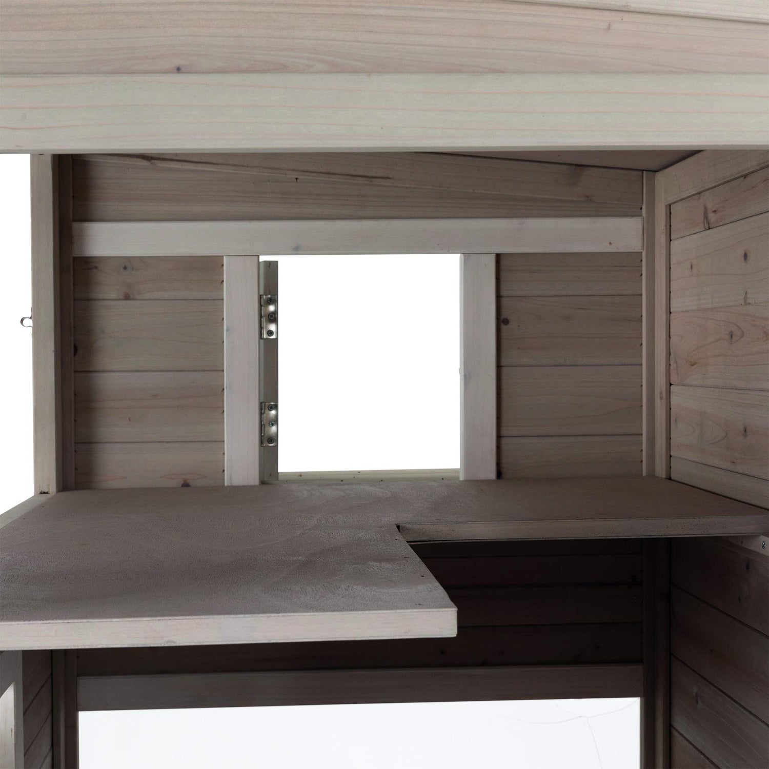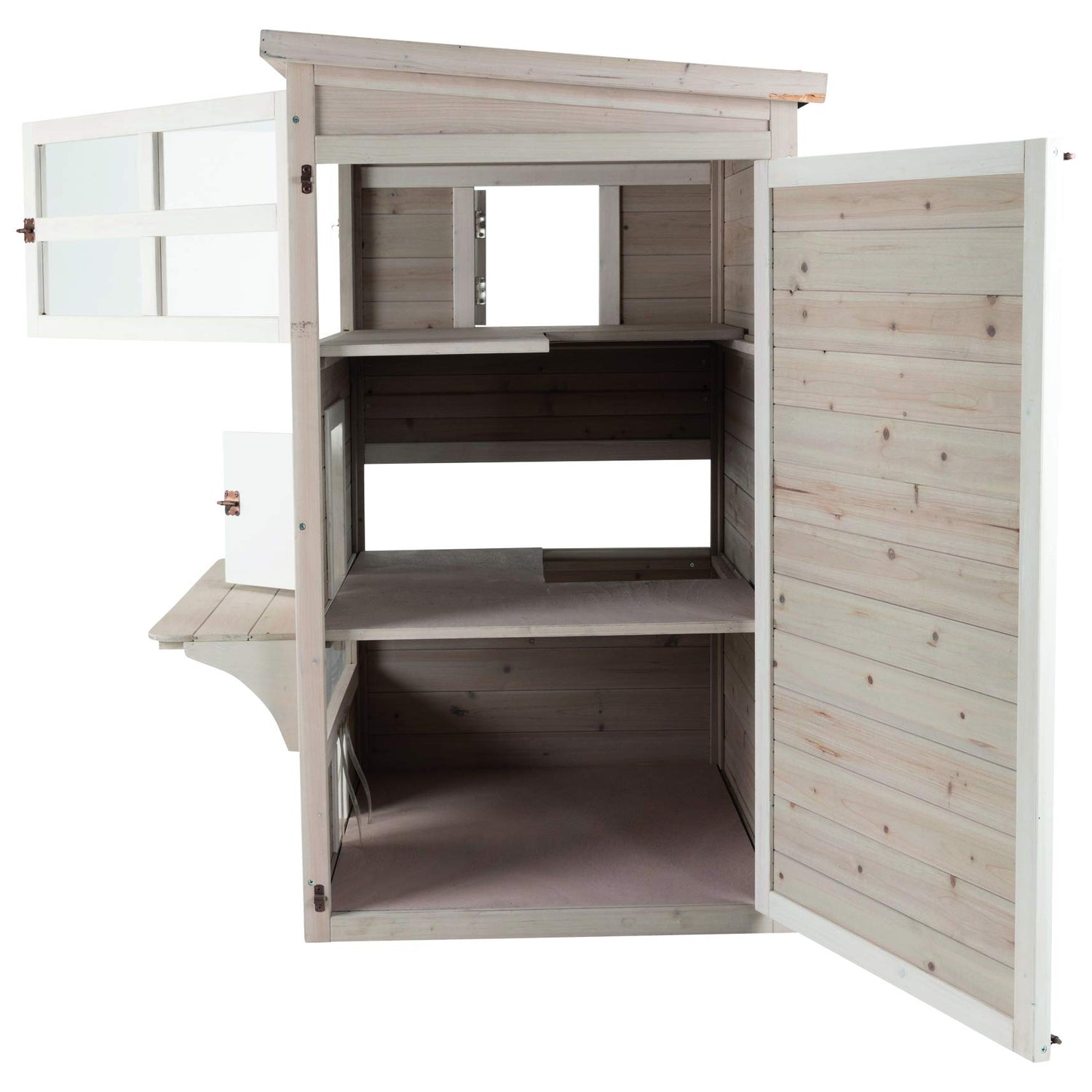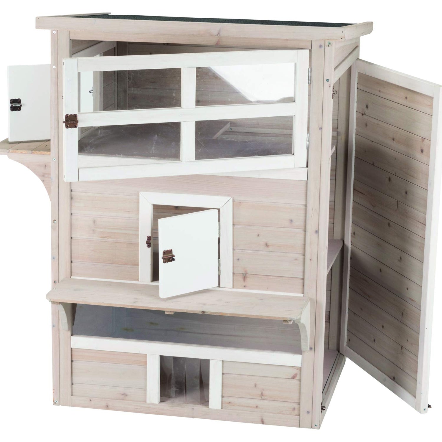 TRIXIE Outdoor Cat House, Weatherproof 3-Story Cat House with Multiple Levels, Doors & Windows with Latches, Outdoor Shelter for Cats, Brown/White Fir Wood
