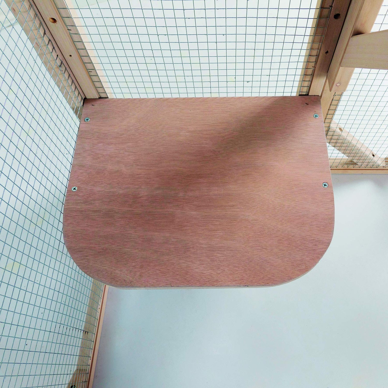 Details: Cats love spending time in the fresh air watching bugs, birds and other animals. Our Wooden Outdoor Cat Enclosure allows your cat to enjoy the outdoors while remaining safely enclosed. This item can be used as a free-standing structure, attached to your home by removing the back panels, or as an extension to TRIXIE Outdoor Catio Home (model 44112). Crafted with fir, durable composite shingles and a weatherproof finish means this product will endure years of use with very little maintenance. Includes 3 large landing platforms (14 x 12 inches). Quick and easy assembly. All hardware included.
