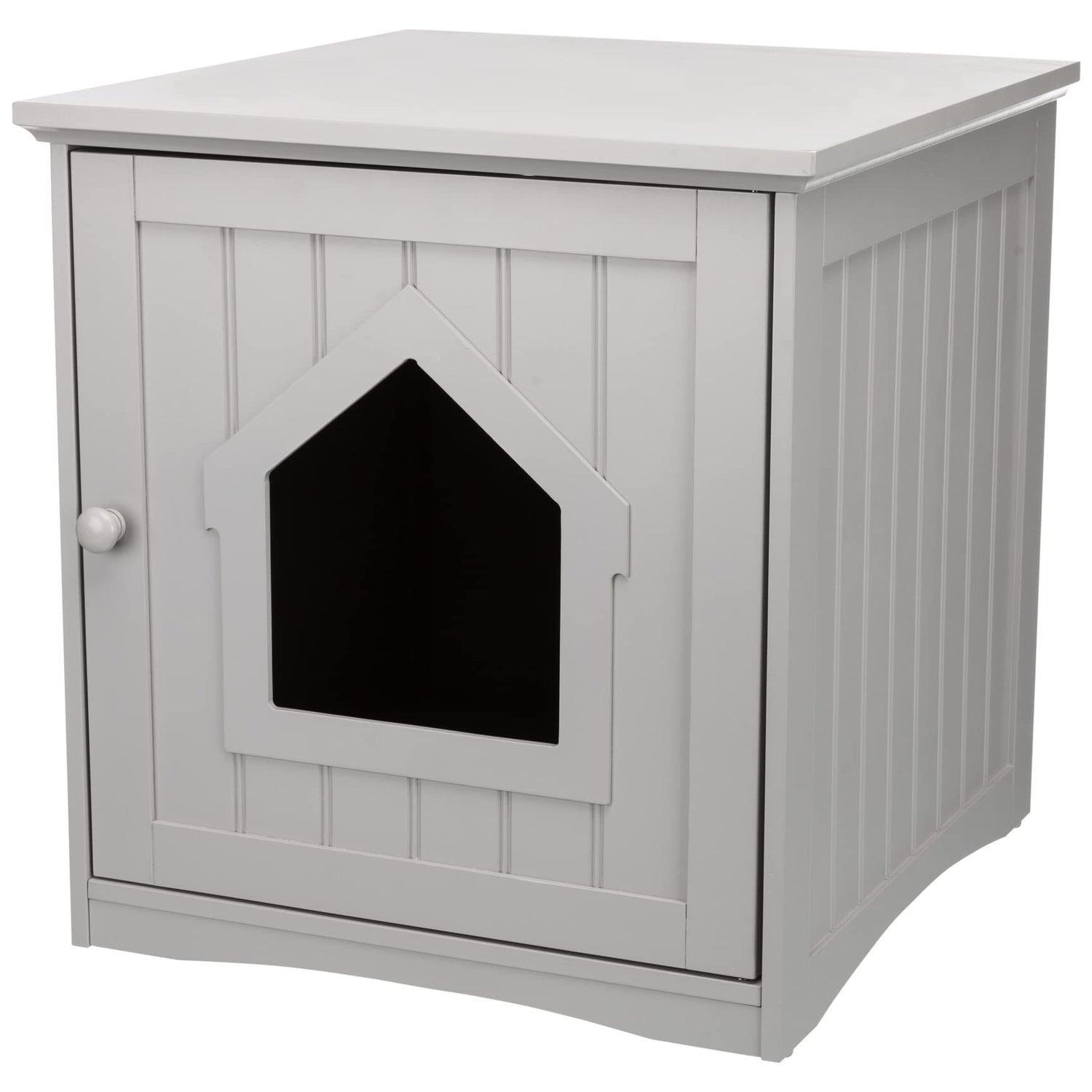 TRIXIE Small Furniture Litter Box Enclosure (Gray), Hidden Litter Box for Cats, Classic Style & Big Front Door for Easy Cleaning, Large Hole for Convenient Entry, Use As Side Table or Nightstand