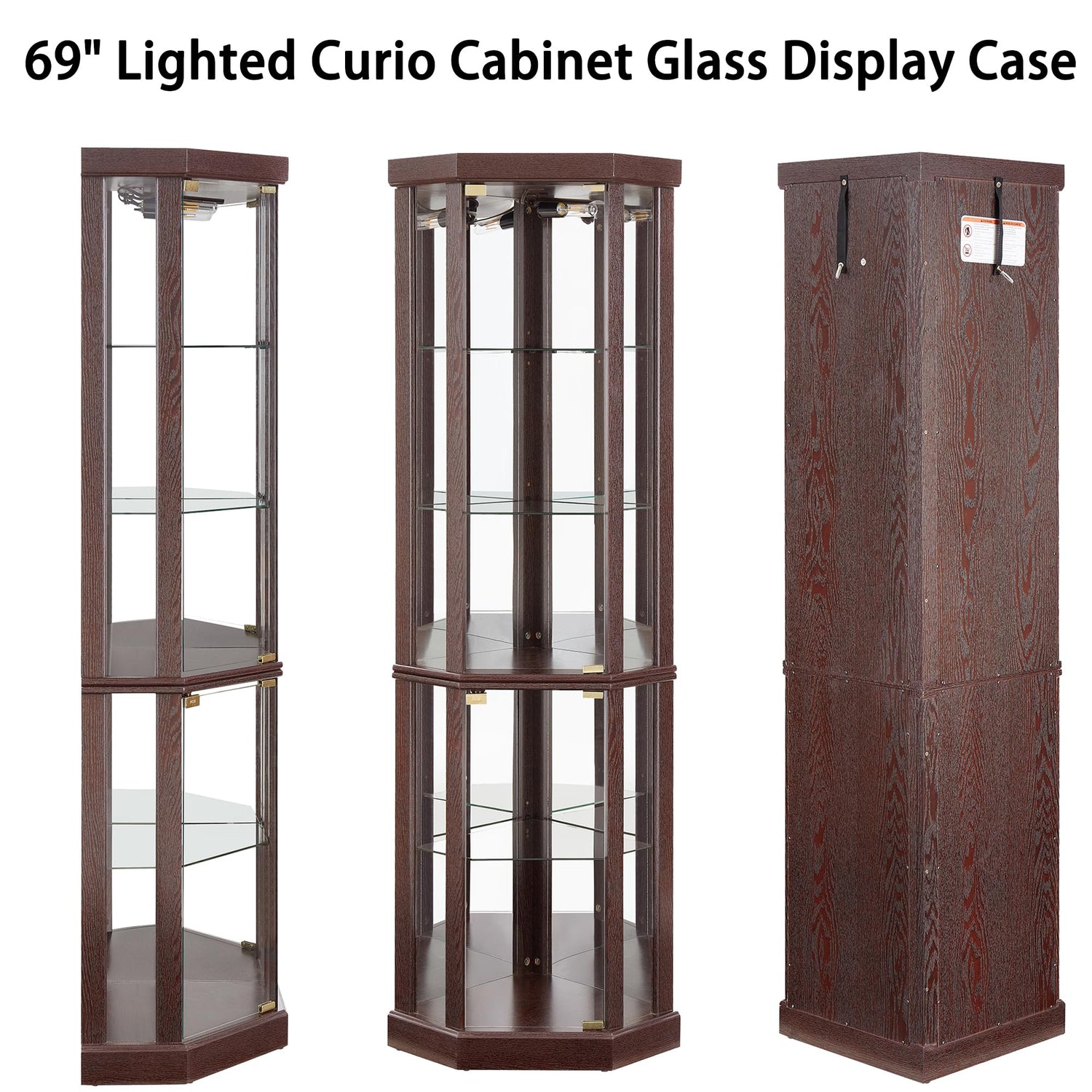 - 【High safety】Curio Corner glass display cabinet made of high quality wood for durability. The Wooden Corner Curio Cabinet has an overall weight capacity of 150 lbs. with 25 lbs. per shelf, enough for most of your storage needs.Wood-framed tempered glass doors reduce dust intrusion, ensuring a secure, dust-free and durable interior. Anti-tip device ensures that the glass display case is securely fixed to the wall, keeping you and your family safe