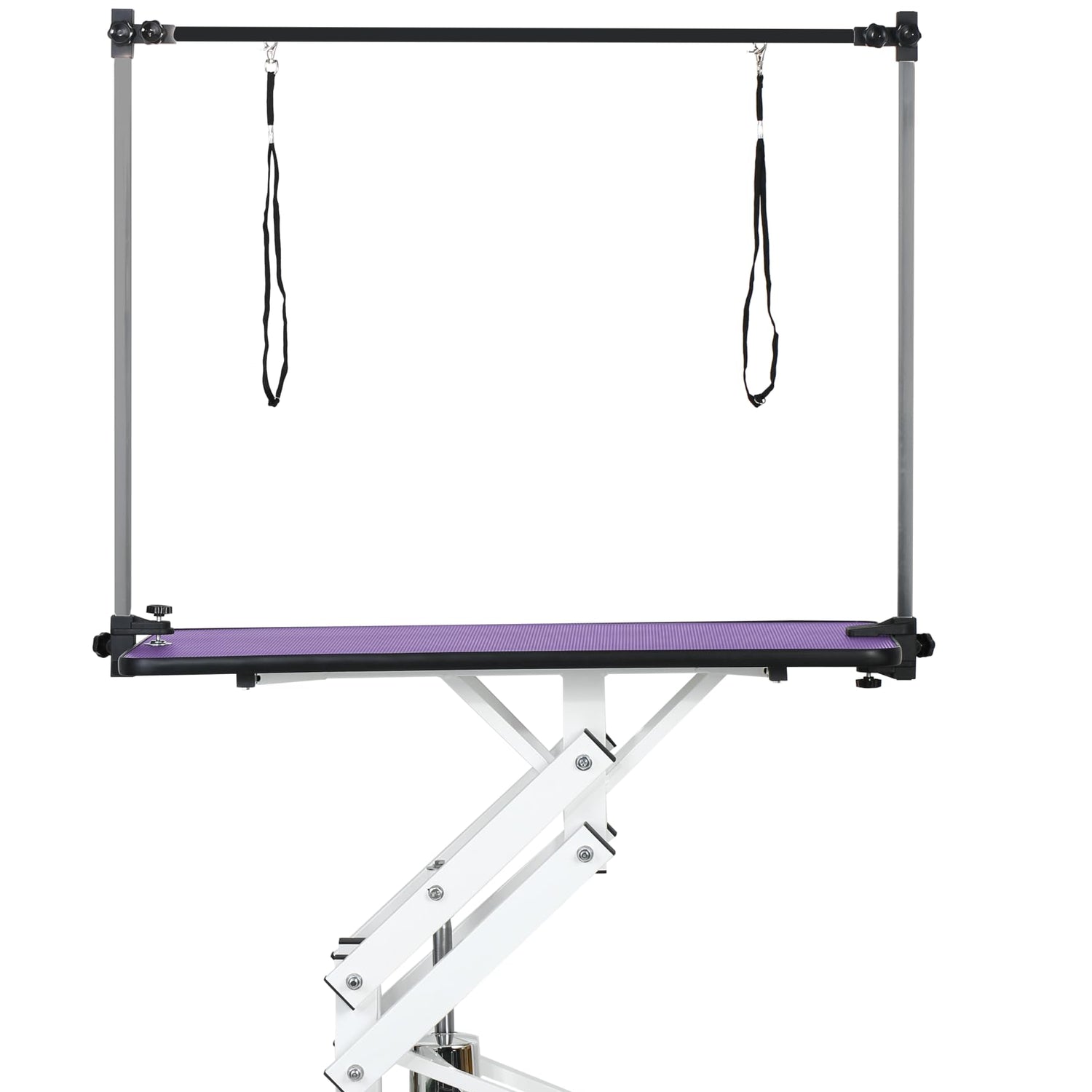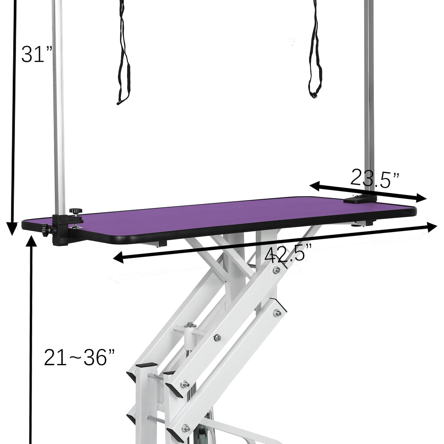 TRODEP 42.5" Hydraulic Dog Grooming Table for Large Dogs Heavy Duty Height Adjustable Dog Grooming Table with Gantry Arm & Noose Height Range 21-36 inch Purple