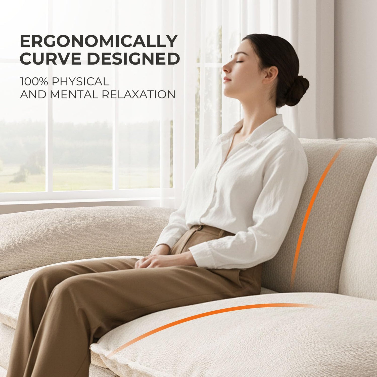 - OVERSIZE SEAT CLOUD FEELING - 3 x 33.5" wide seat supports 4-5 persons. The fluffy double cushion couch for living room is perfect for a small family. Ergonomic curve design cloud sofa provides excellent back and lumbar relief while you are spending long time watching a movie, reading, or simply relaxing.