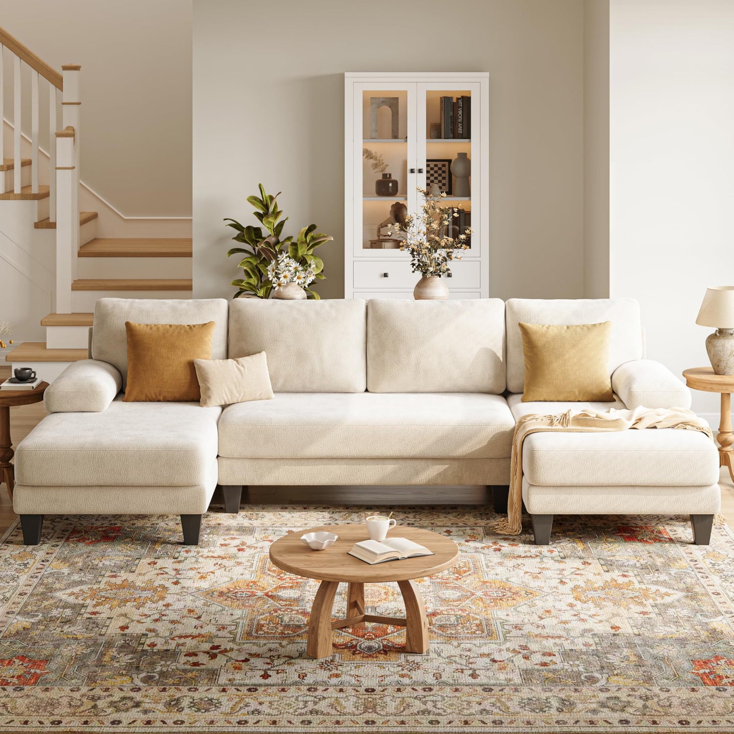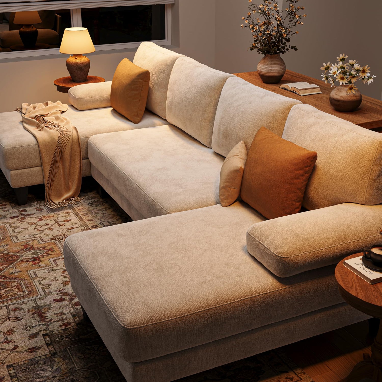 TROMIRY U-Shaped Sectional Couches for Living Room | Chenille Sofa with Double Chaise |112 Inch Beige Sectionals Couch for Apartment