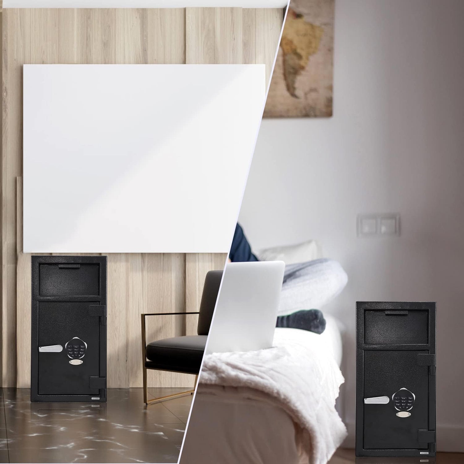 - 【Heavy-Duty Thick Drop Safe】: Say goodbye to the weak protection of standard drop safes! Our thick drop safe is made with heavy-duty steel and reinforced design, providing unparalleled security and durability to ensure your valuables are well protected in any environment!