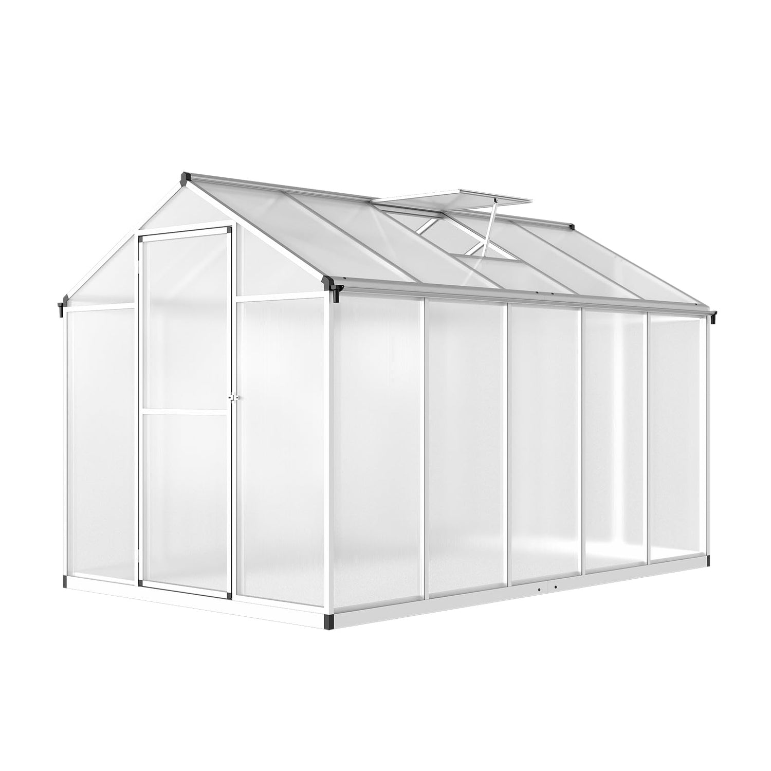 TROPOW 6.25 x 10 Ft Greenhouse for Outdoors with Quick Structure, Aluminum Alloy & Polycarbonate Green House with 24" x 23" Roof Windows Vent, Walk in Sunroom for Patio, Backyard, Garden,Silver