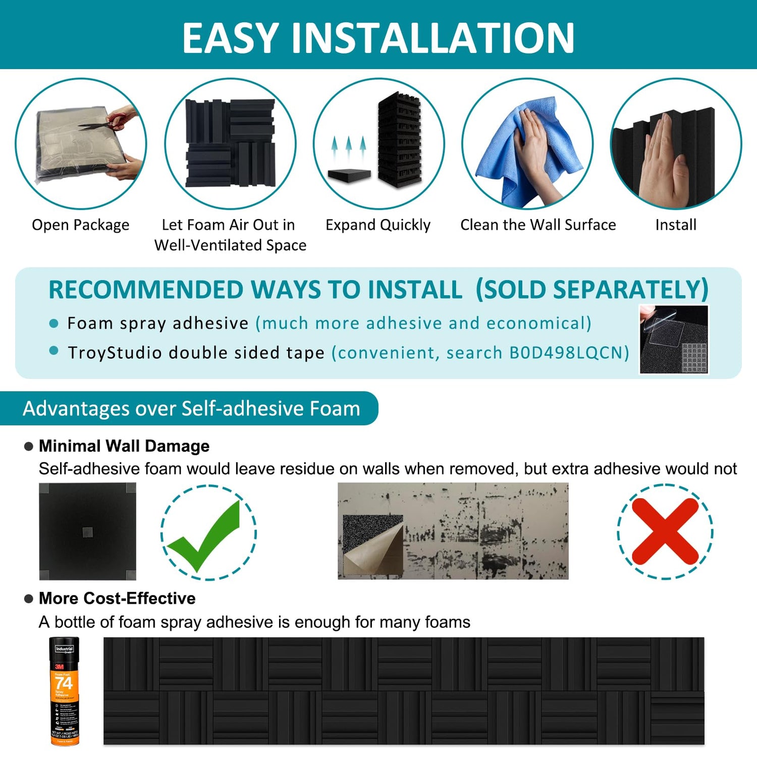 - 【EASY TO DECOMPRESS/ CUT/ INSTALL】: These foam decorative wall panels decompress easily when following the instruction sheet included. They are very soft and flexible, making them effortless to cut with a knife and install. You can quickly set up them using foam spray adhesive, TroyStudio double-sided tape (search B0D498LQCN, sold separately), or small screws. Compared to self-adhesive foam, installation using an external adhesive leaves minimal foam residue on your walls upon removal