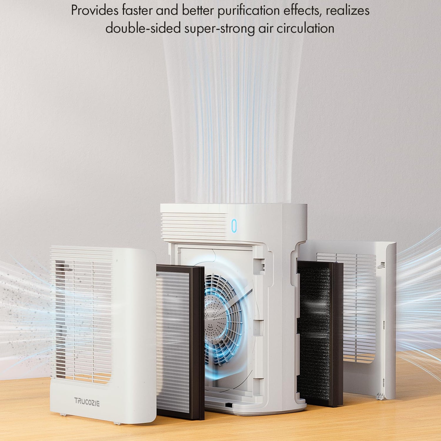 Trucozie Air Purifier for Home Large Room Bedroom Up to 1937 Ft² in 1 Hr With Double-sided Air Inlet, Air Quality and Light Sensors, HEPA Sleep Mode for Allergies, Dust, Smoke, Pet Hair, White