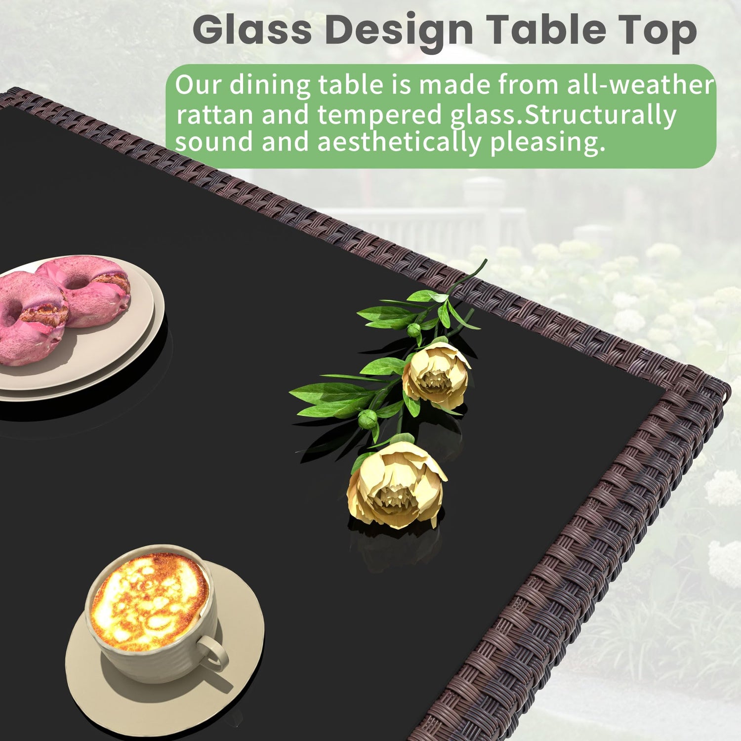 - Durable Craftsmanship: Constructed from high quality rattan, this patio furniture set has a solid structure that guarantees long-lasting durability. The table is made of high-quality tempered glass with high load-bearing capacity and is suitable for placing drinks, food and any fine decorations.