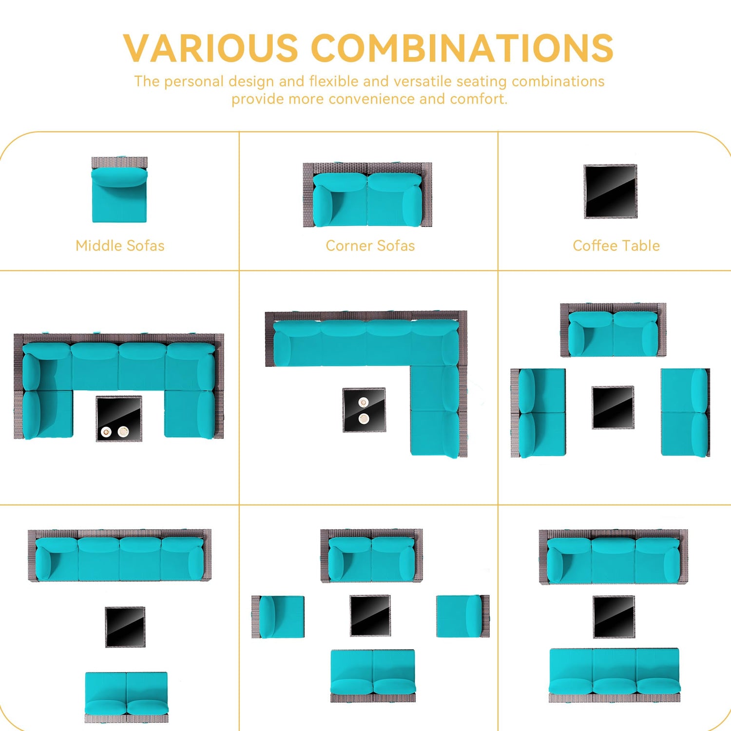 - 【Complete Package & Support】Trumbeak 9 pieces patio furniture set includes 2 corner sofas, 2 middle sofas, 2 swivel chairs,1 side table,1 coffee table, 1 fire pit table and the instructions. Your set ships securely in 5 labeled boxes and is backed by reliable support—simply contact our team with photos of any missing or damaged parts for a prompt reply within 24 hours