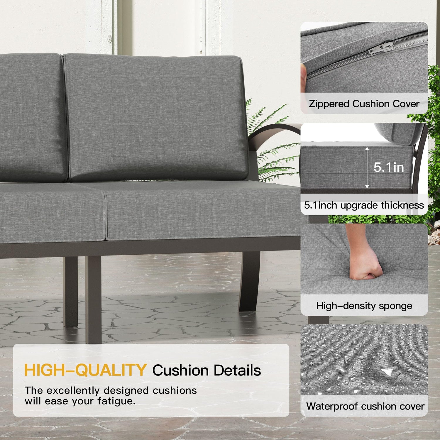 - Luxurious 5.1 Inch Thick Cushions:Immerse yourself in unmatched comfort with our outdoor patio furniture set,featuring cushions that are 5.1 inches thick.These cushions not only provide optimal support but are also UV-resistant and waterproof,ensuring their longevity and beauty even when exposed to the elements