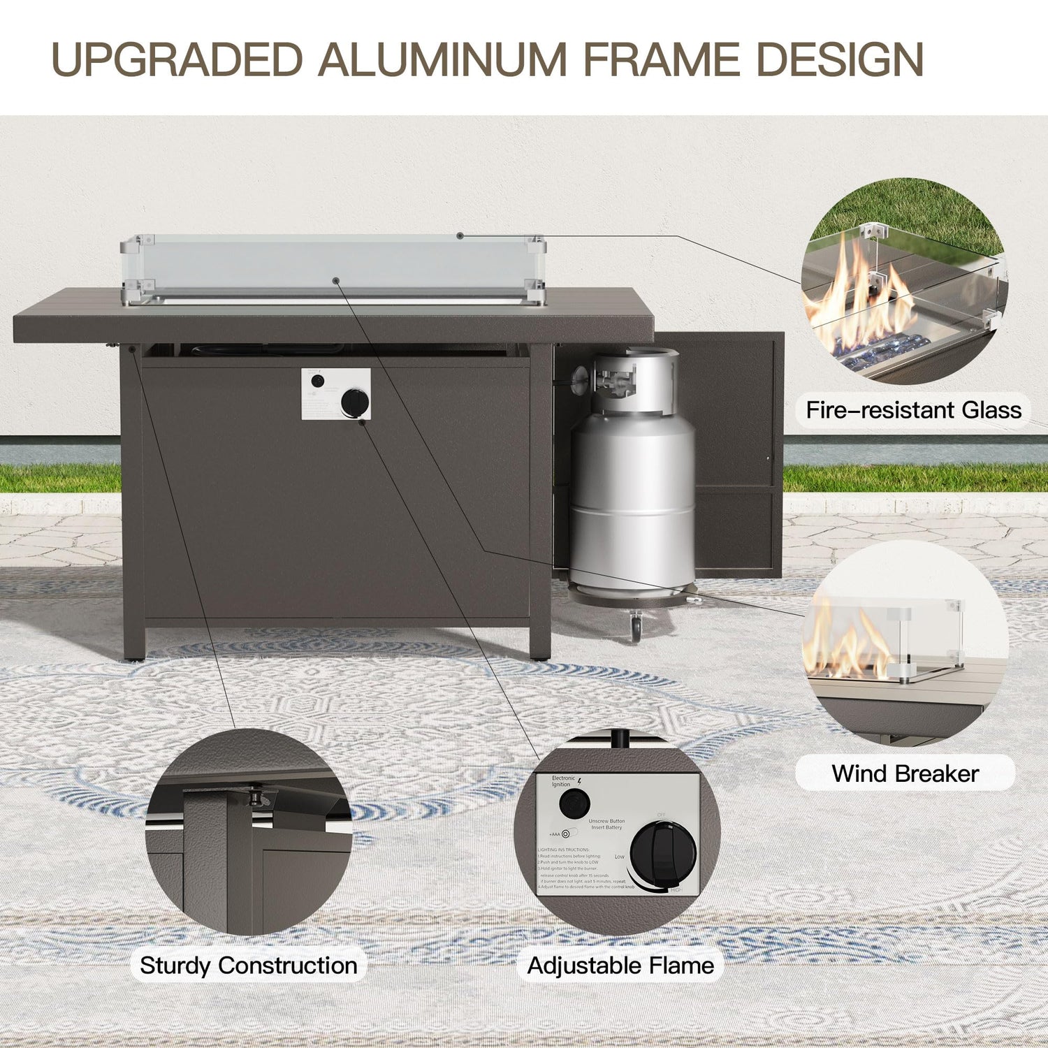 - CSA Certified Fire Pit Table:The fire pit table is equipped with an upgraded dual tube burner with one-touch ignition for quick startup and a heat output of 55,000 BTU's upon ignition to maintain a steady and full burn.Propane fuel allows you to stop suffering from ash and smoke.The fire pit is also equipped with windproof glass,glass stones and a waterproof cover,providing you with a better user experience.