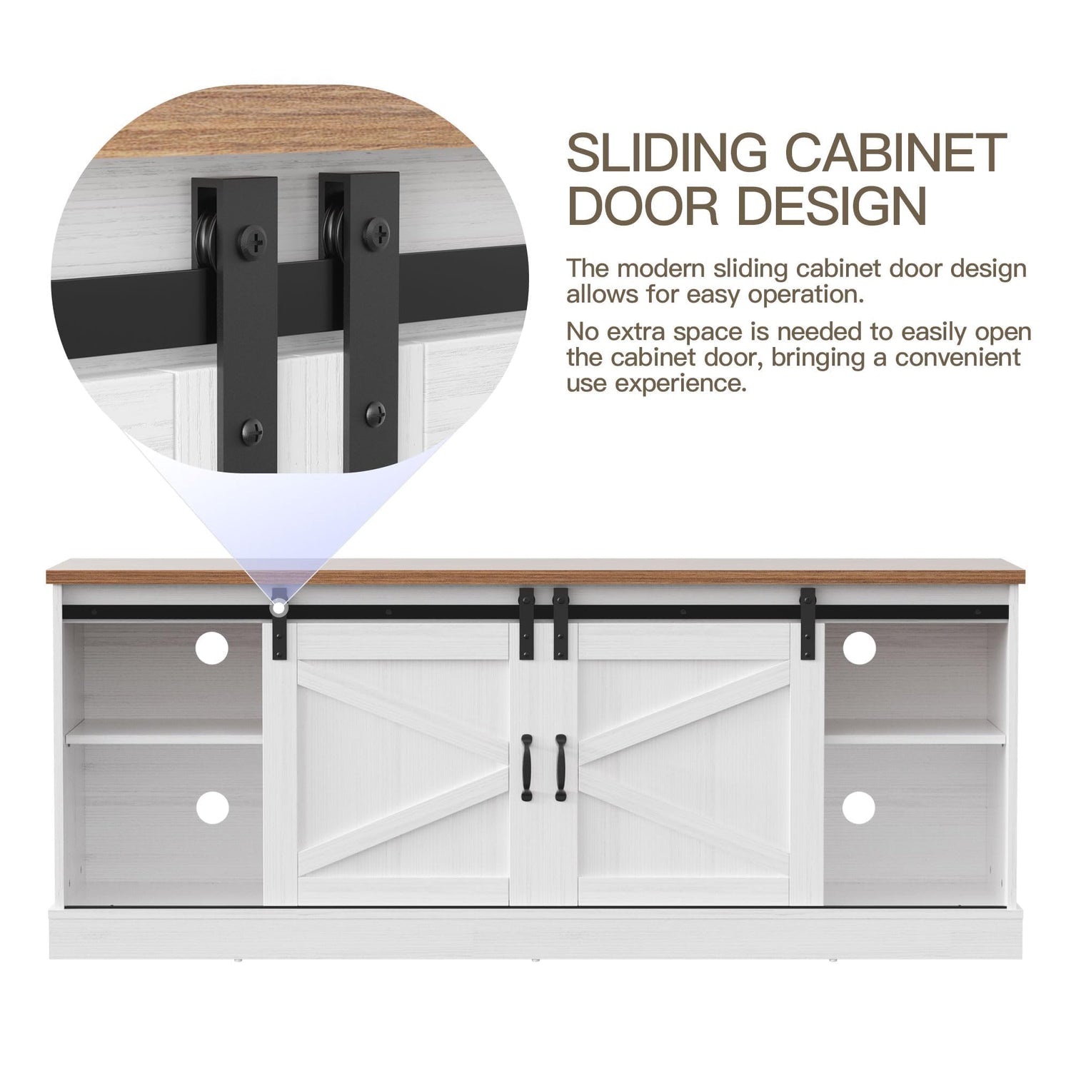 Trumbeak Farmhouse TV Stand for Televisions up to 75 Inchs,Entertainment Center with Sliding Barn Doors and Storage Cabinets,Modern Media TV Console Table for Living Room,Bright White