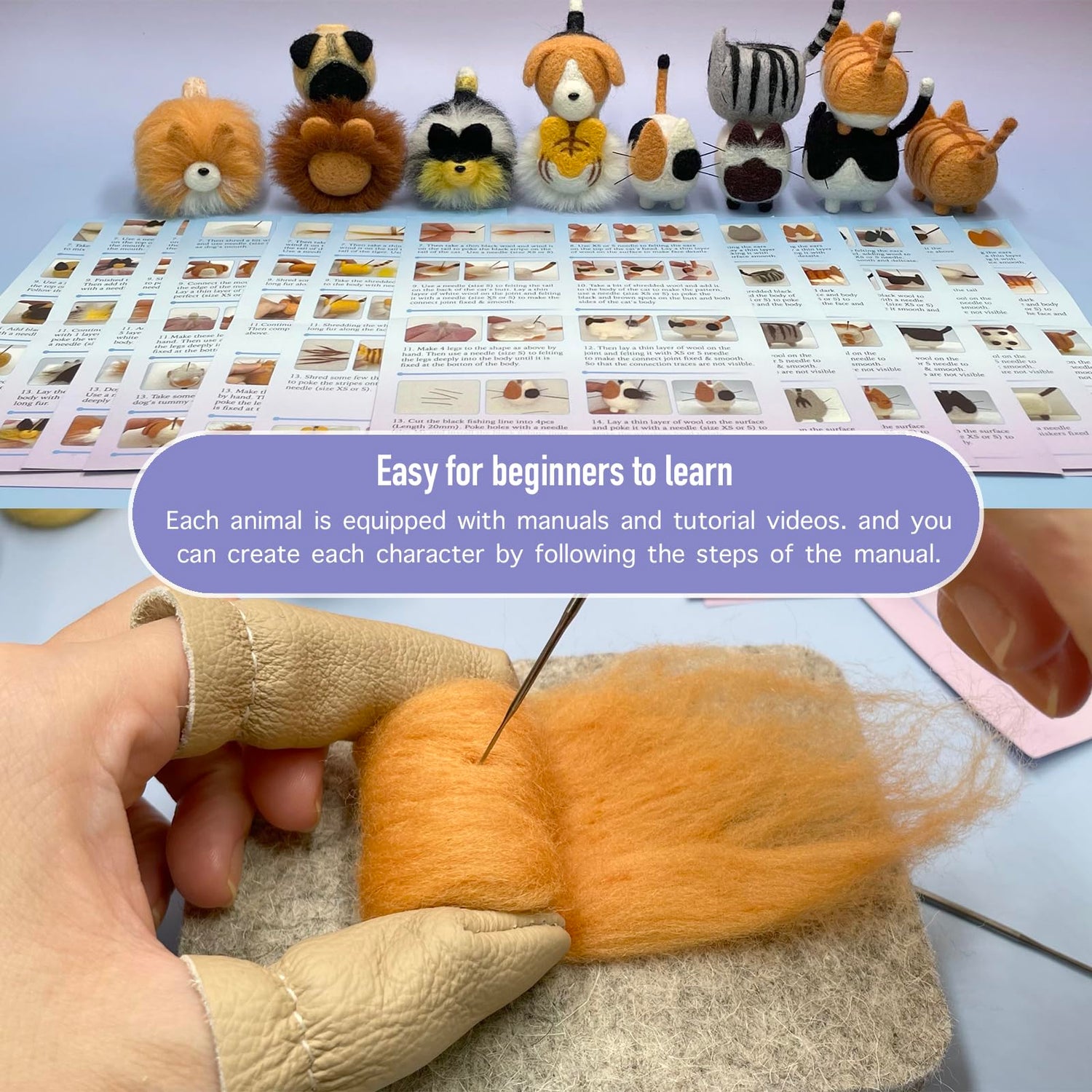 - 【Felting kits for beginners adult】: You don't have to worry if you have no prior experience with needle felting, because it’s created for beginners adult hobby kits. The step-by-step instructions are simple and easy to follow with pictures to guide you, There is also a video QR code on the manual, you just need to scan it to watch the tutorial videos at any time.