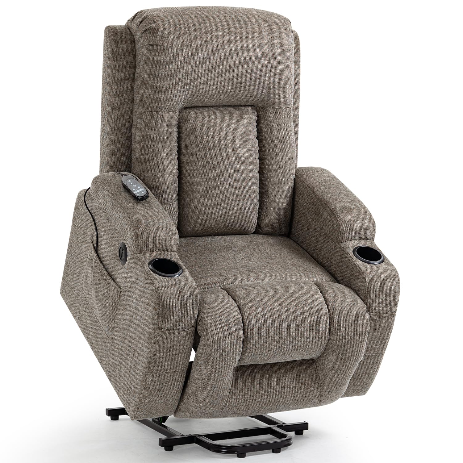 - Comfort & Security: Different from other chairs' sponge padding, the power lift recliner is overstuffed with high-density doll cotton, which gives you a comfortable sense of softness. The electric lift recliner is upholstered with high-quality linen fabric, which is durable, breathable, quick-drying, and elegant, with a good touching. The metal frame base features a tipping-proof design, with a large load-bearing capacity up to 350lb, durable and secure enough to support a adult man.