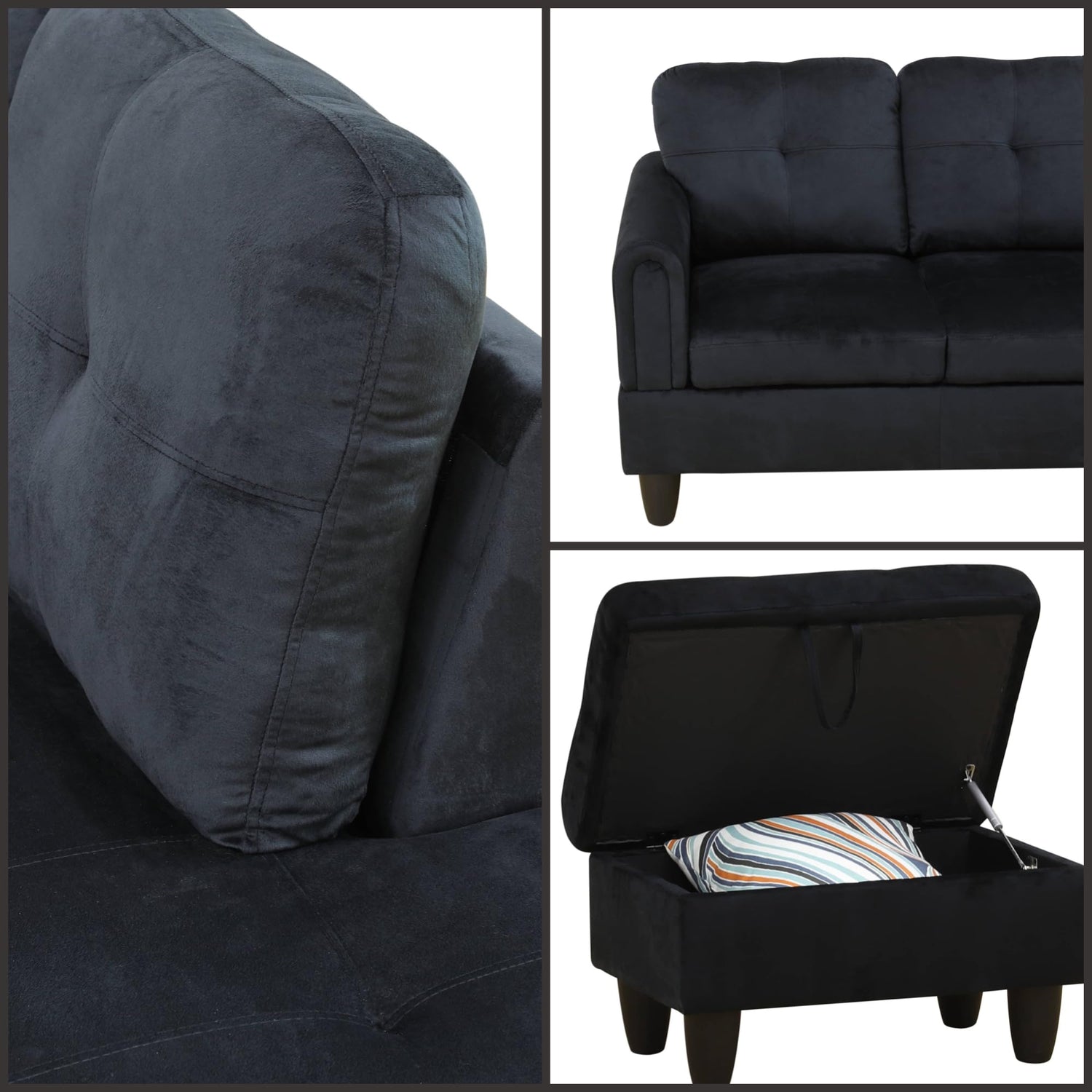 Trygoal L Shaped Couch Sectional Couches with Chaise and Storage Ottoman, 3 Pieces Modular Convertible Sofa for Living Room Furniture Sets and Small Apartment, Black