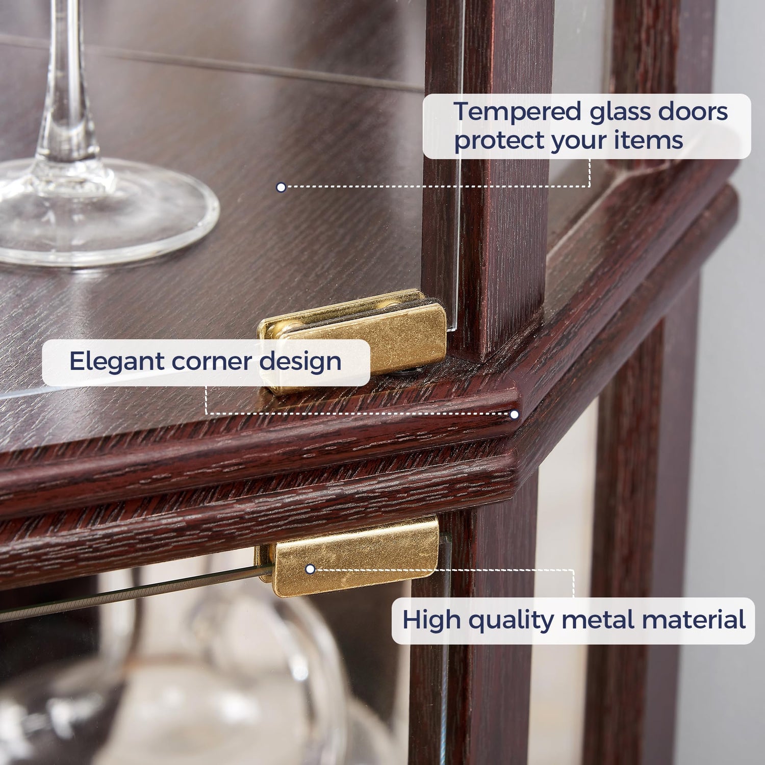 Trygoal Lighted 3-Side Glass Display Curio Cabinet, Corner China Cabinet with Tempered Glass Doors, Wooden Display Case with Light Bulb for Living Room, Dark Cherry