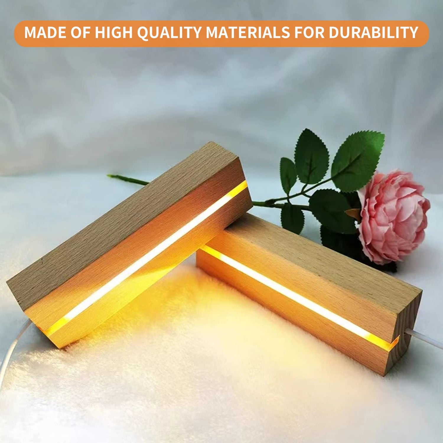 Details: 2 Pieces LED Lights Display Base Wooden Light Display Stand Led Base Decoration Display Stand USB Wooden Light Base for DIY Acrylic Plate Resin Glass Crystal Art Ornament Warm/White Light