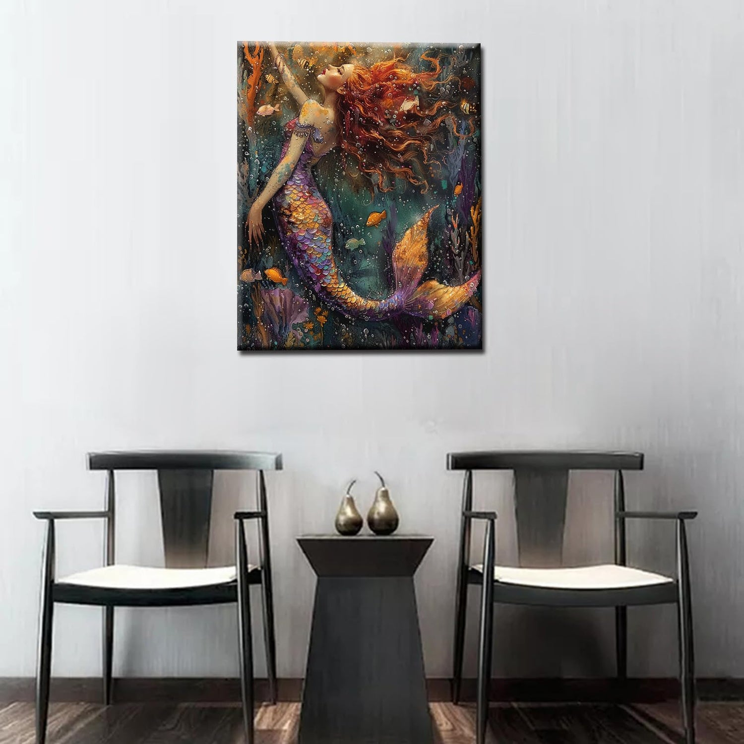 - Painting by Numbers Kits :Colorful Mermaid canvas wall art Include 1pc High-quality canvas 16X20 inches(without frame), 1 set brushes(include 3pcs),1 set acrylic paints,use your own hands to create exquisite artworks.