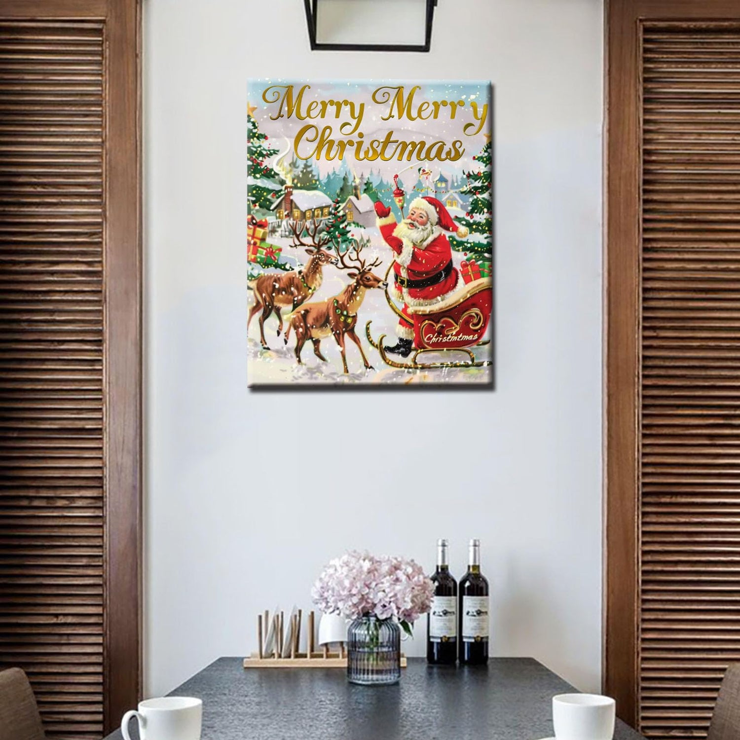 Tucocoo Merry Christmas Painting Santa Claus Paint by Number Kits 16 x 20 inch Canvas DIY Animal Deer Oil Painting for Adults Beginner with Brushes and Acrylic Home Decor Landscape Art(Frameless