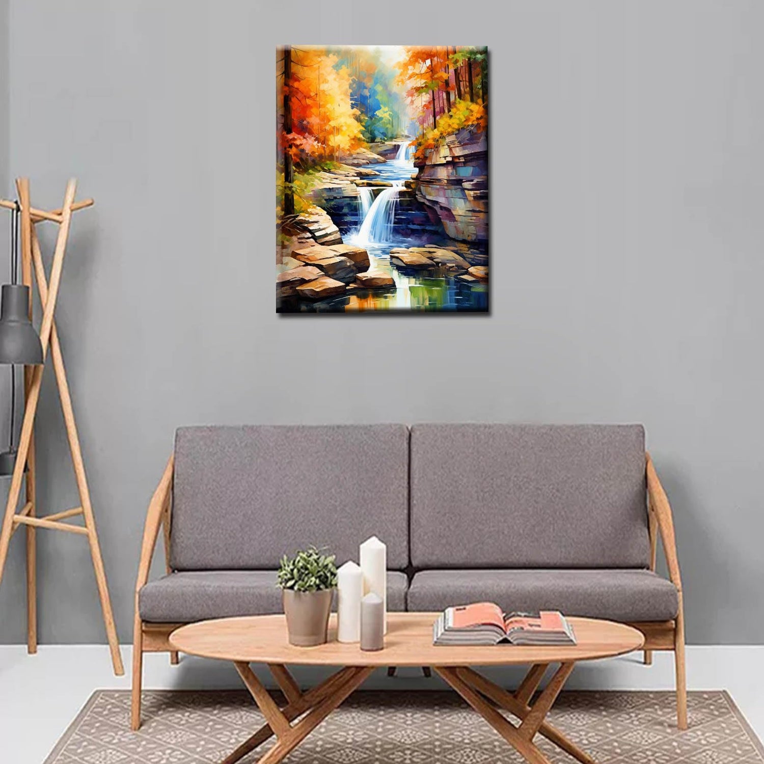 Tucocoo Sandstone Paint by Numbers Kits 16x20 inch Canvas DIY Oil Painting for Adults with Brushes and Acrylic Pigment, New River Falls National Park Landscape Pictures for Home Decor (Without Frame)