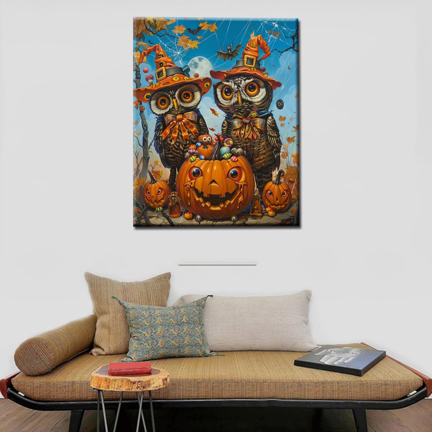 - 【Product Feature】Halloween Pumpkin Owl painting canvas is made of high quality materials,Strong canvas offers artists the platform to create artworks. Pattern is printed in high definition, Plus, they’re water-resistant once dry.