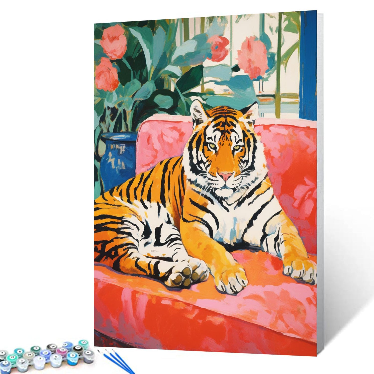Tucocoo Wild Animal Tiger Laying on Sofa DIY Paint by Numbers for Adults Childlike Innocence and Charm Style DIY Oil Painting Acrylic Paint Art Pastel Painting Kit Canvas 16x20 Inch(Without Frame )