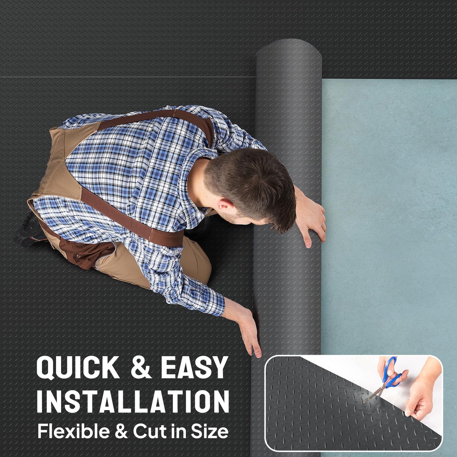 - ✅【Non-Slip & Effortless Cleaning】The diamond pattern on the surface provides max grip, providing a safe entry and exit for your vehicle.The waterproof PVC resists staining from dirt, mud, automotive fluids, and commercial chemicals. Effortless cleanup surface with vacuum, broom, wet cloth, or dry mop