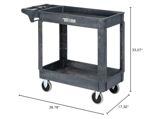 TUFFIOM Plastic Service Utility Cart with Wheels,550lbs Capacity,Heavy Duty Tub Storage Cart W/Deep Shelves, Multipurpose Rolling 2-Tier Mobile Storage Organizer, for Warehouse Garage industrial Cart