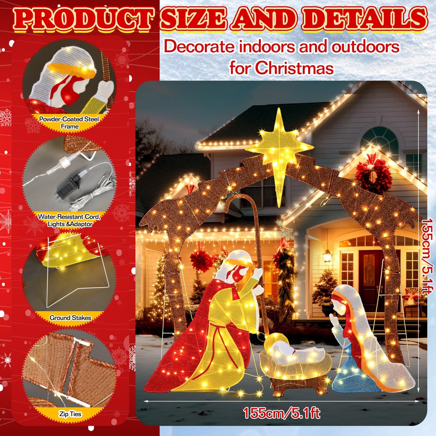 - Capture the True Essence of Christmas: our set offers a heartwarming outdoor Nativity scene lighted that creates a vibrant holiday ambiance; An ideal outdoor religious Christmas decoration you need to celebrate the holy season in style
