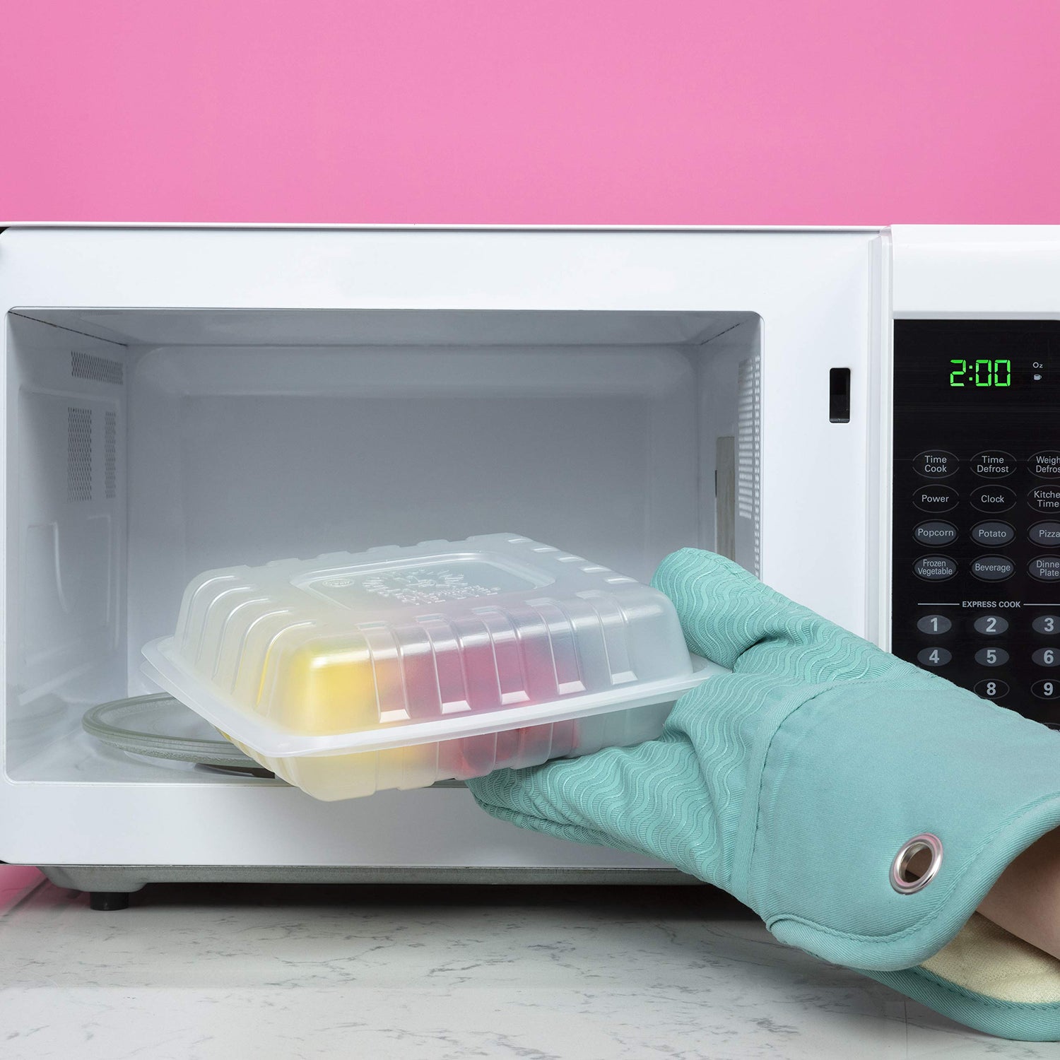 - Includes detailed instructions for using with the microwave (heat times depend on microwave wattage)