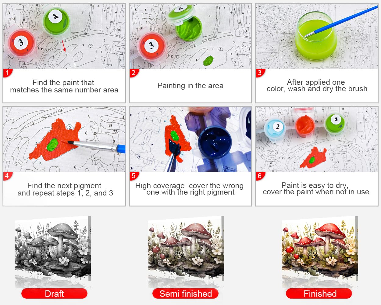 TUMOVO Adults & Kids Paint by Numbers Mushrooms & Forest Scenes, 16 x 20 Inch Acrylic DIY Craft Kits