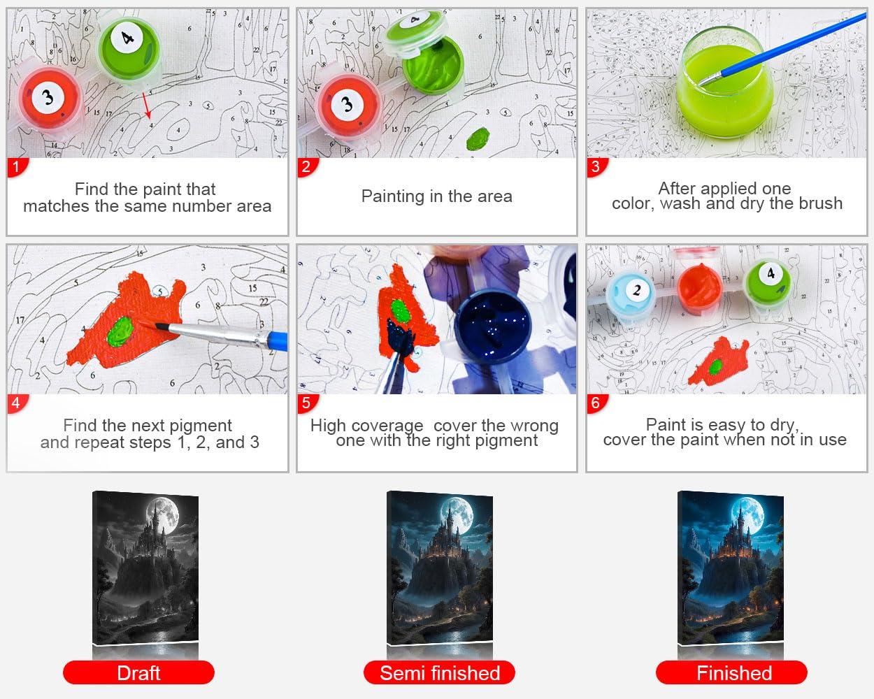 - Easy To Be A Painter: Paintings are simple and easy to draw, and can be easily handled by teenager, adults, and the elderly. Two easy steps to complete a painting, first: dip the paint. Second: paint the corresponding numbers on the canvas