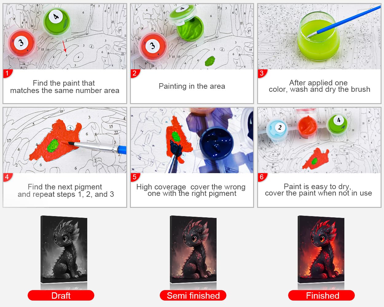 TUMOVO Cute Little Baby Dragon Paint by Numbers Kit, 16x20 Inch Acrylic Painting Arts and Craft for Kid & Adult
