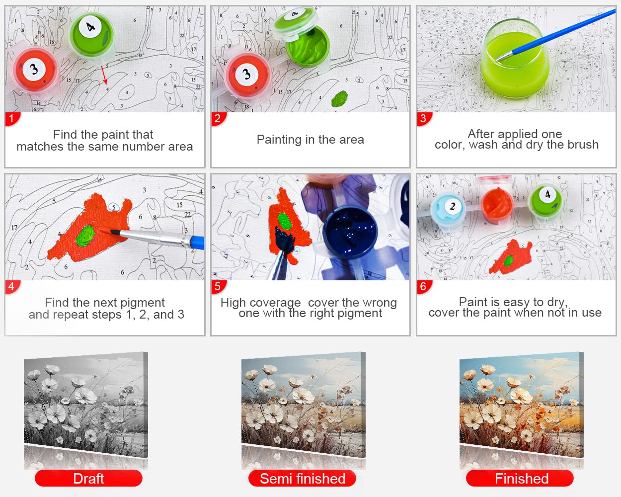 - 【High Quality】The paint-by-number canvas is moisture-proof and waterproof the acrylic paints are safe, non-toxic, and tasteless. HD printing technology makes the numbers on the canvas clear and easy to read.