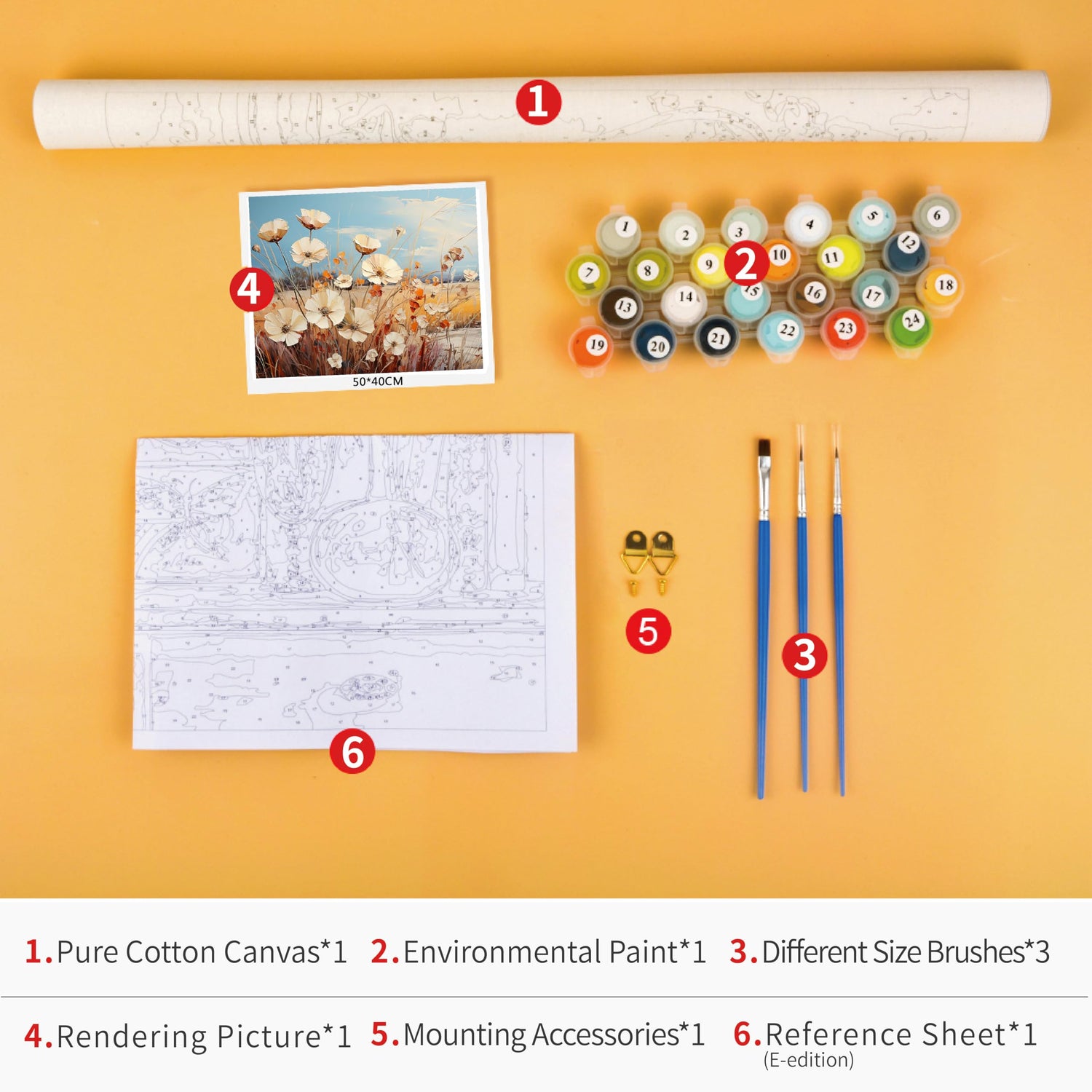 - 【Paint by Number Kits】Paint by number set included 16"x20"(40x50cm) numbered canvas, 3 brushes, 1 set of acrylic paints to paint the canvas. You can paint directly without needing to prepare additional tools.