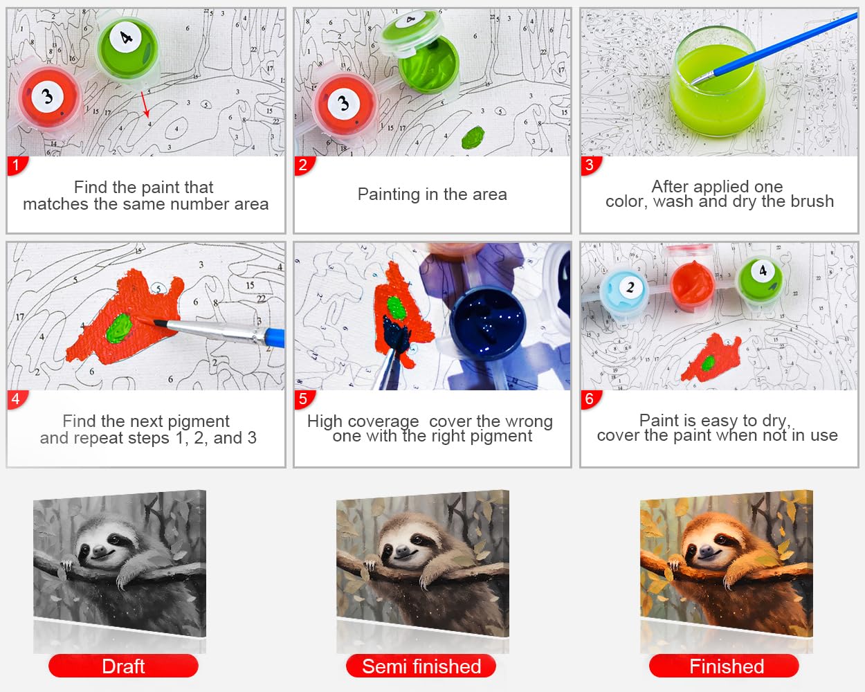 - 🎨 PAINT BY NUMBERS KIT:Includes a 16'' x 20'' canvas (without framed), 3 painting brushes, 1 set of acrylic pigment colors and a sample picture.DIY paint by number kits will make you feel the charm and fun of art.