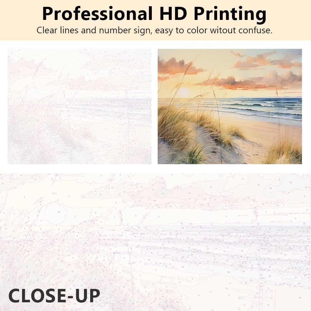 TUMOVO DIY Paint by Number for Adult Ocean, Dune Landscape Paint by Numbers, Nature Landscape Adult Paint by Numbers Kits on Canvas, 16X20 Inch Beach Paint by Numbers for Adults Beginner
