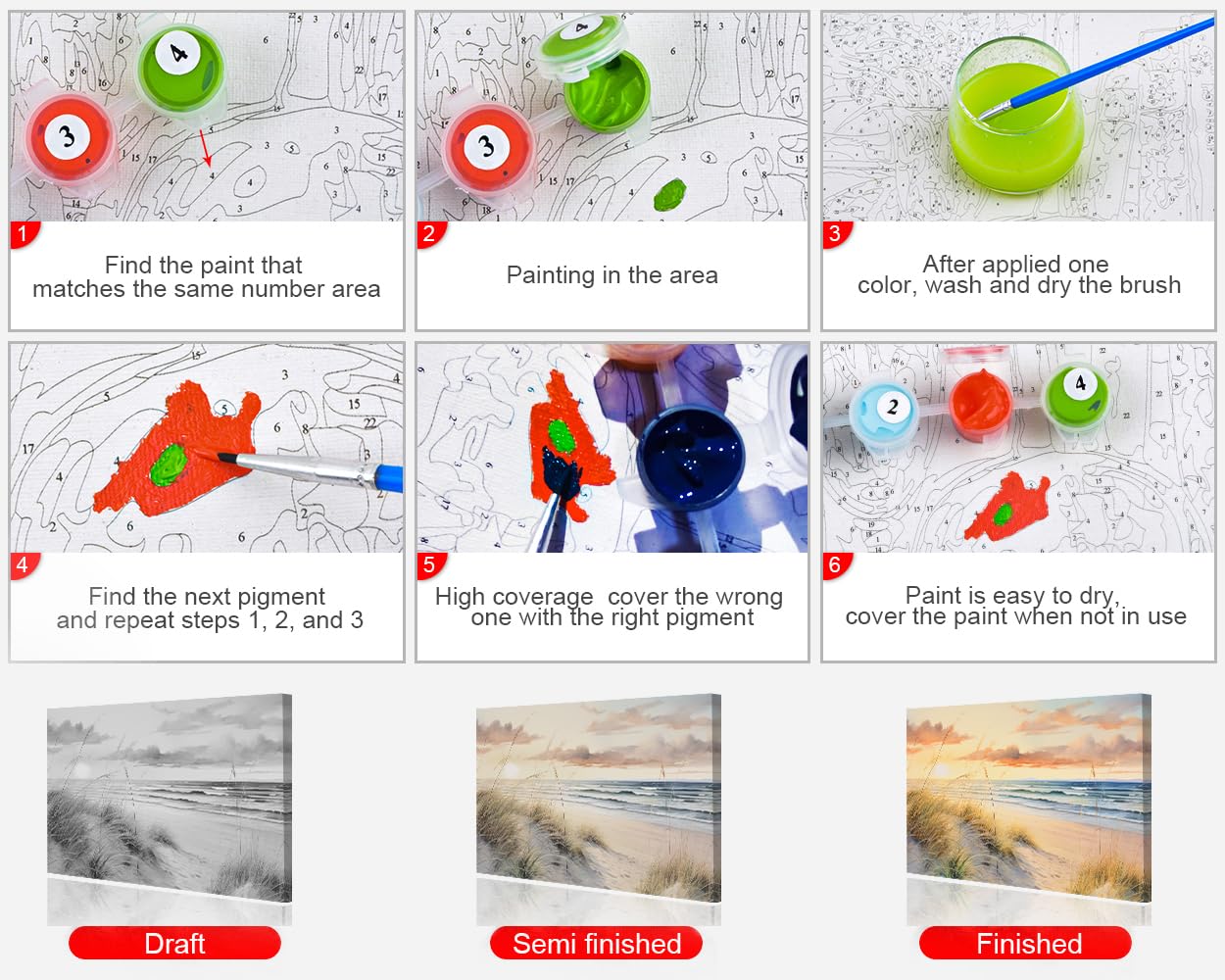 - Eco-Friendly Materials: MOGYN uses safe acrylic paint adult paint by number and high quality canvas, easy to color and save. We provide enough color pigments, you don't need to mix paint, cover the number with just one coat of paint by number. When you accidentally use the wrong color, just cover with the correct color paint.