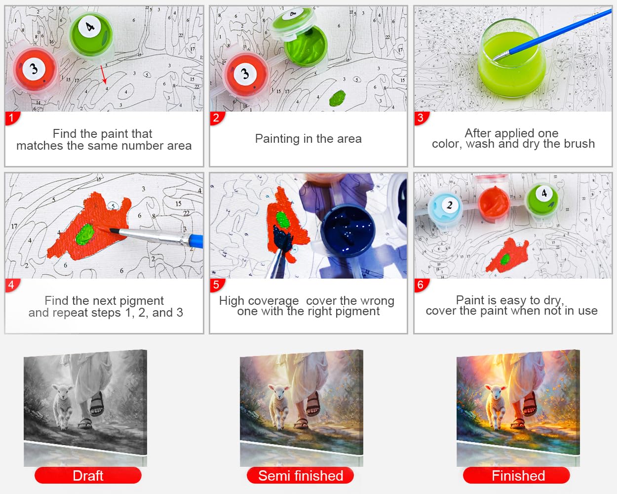 TUMOVO DIY Paint by Numbers for Adults Art Religious Christianity Adults' Paint by Number Kits Lamb Walking with Jesus Art Oil Hand Painting Paint Kits Art Crafts for Home 16x20 in