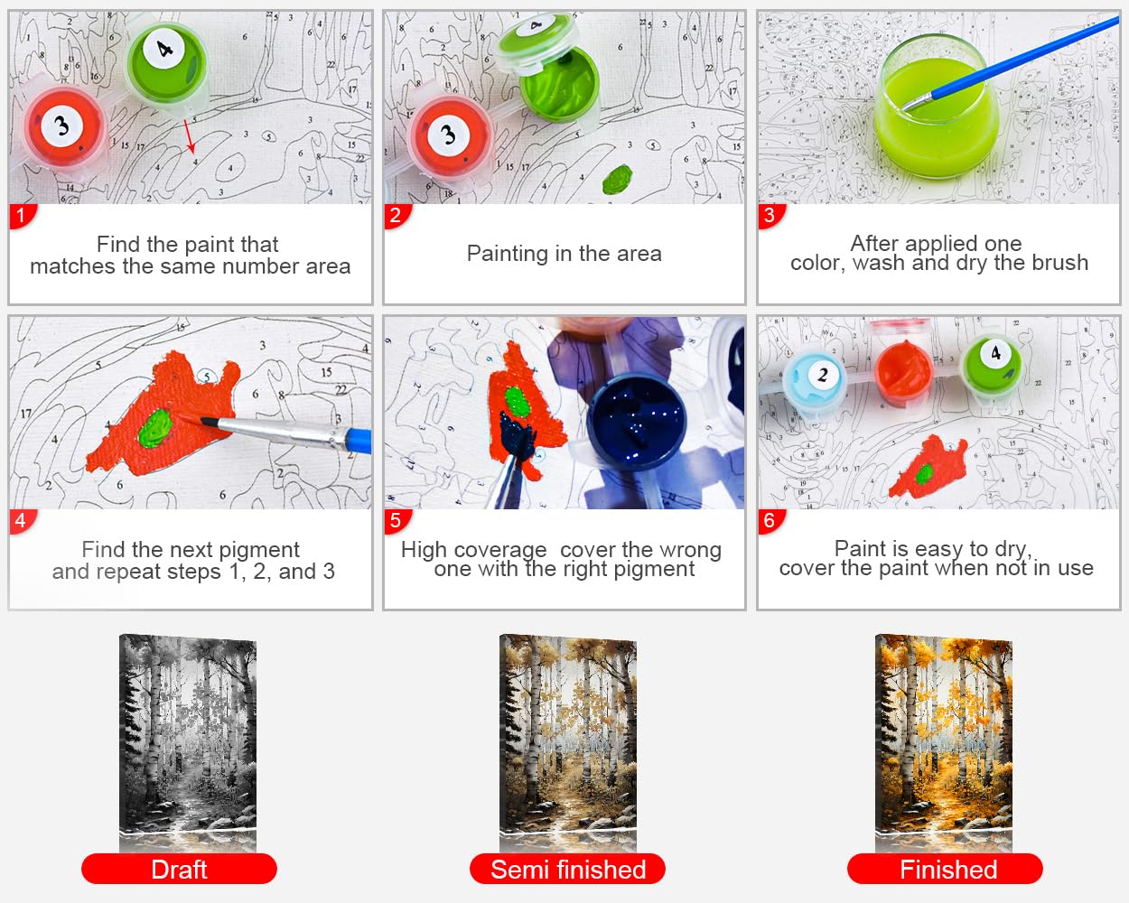 - No Paint Mixing: Paint by number for adult uses a coverable paint, can be directly colored, no need to add water for blending. When you used the wrong color accidentally, just covered with right color pigment.
