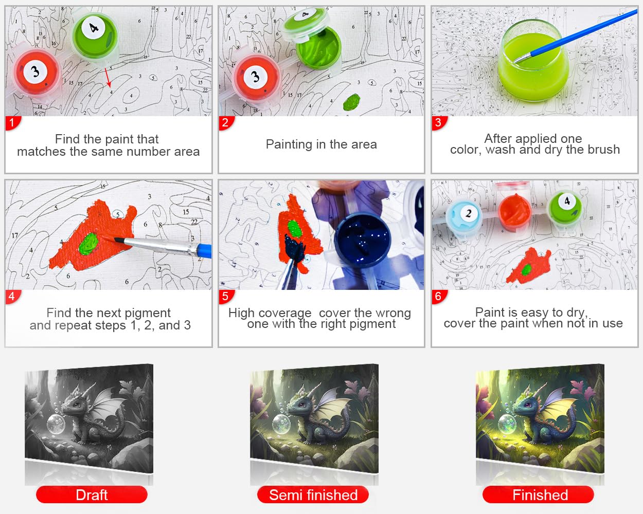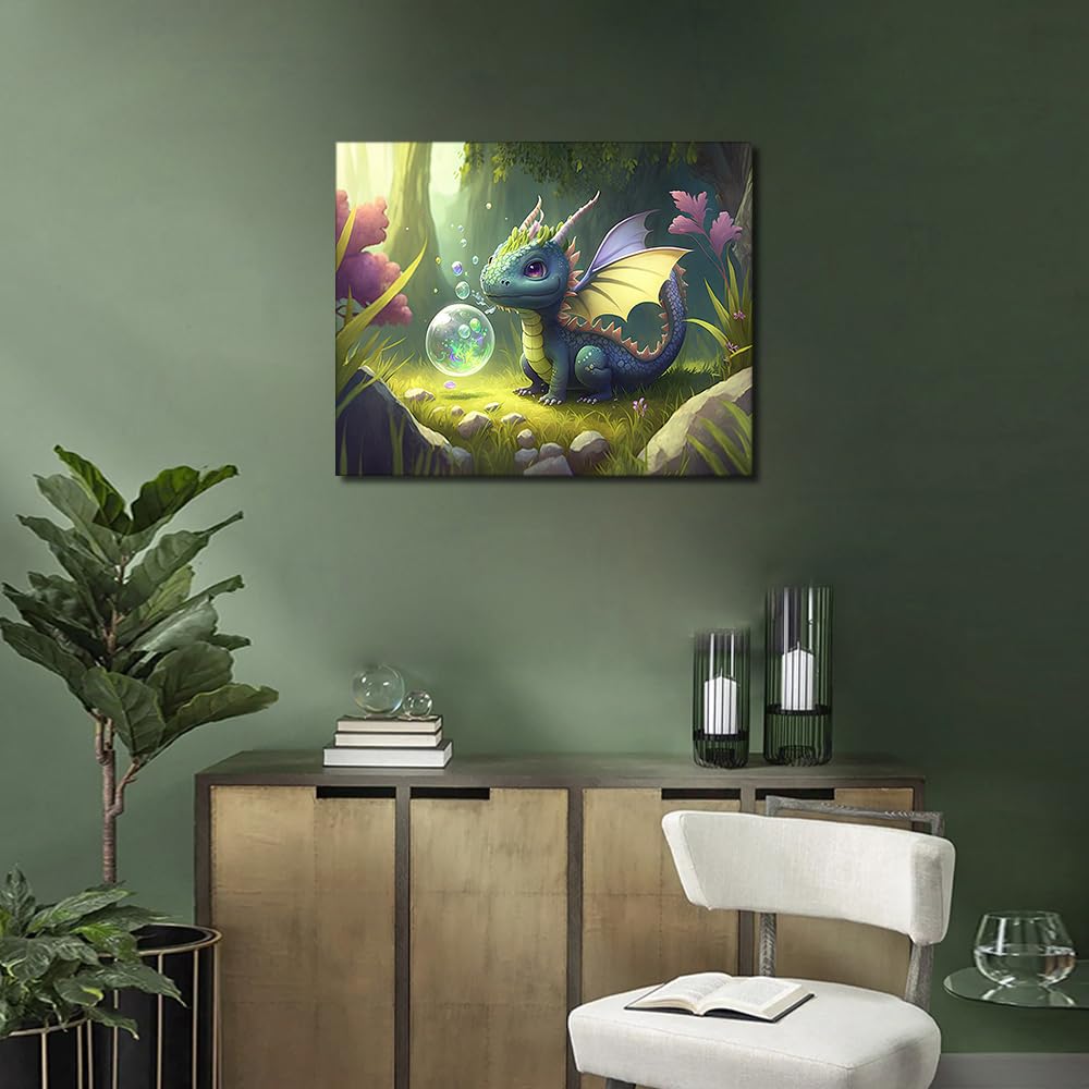 TUMOVO Paint by Numbers Cute Little Dragon DIY Paint by Numbers Kit for Adults and Kids DIY Canvas Painting by Numbers Watercolor Oil Painting Acrylic Painting Arts and Craft 16x20 Inch