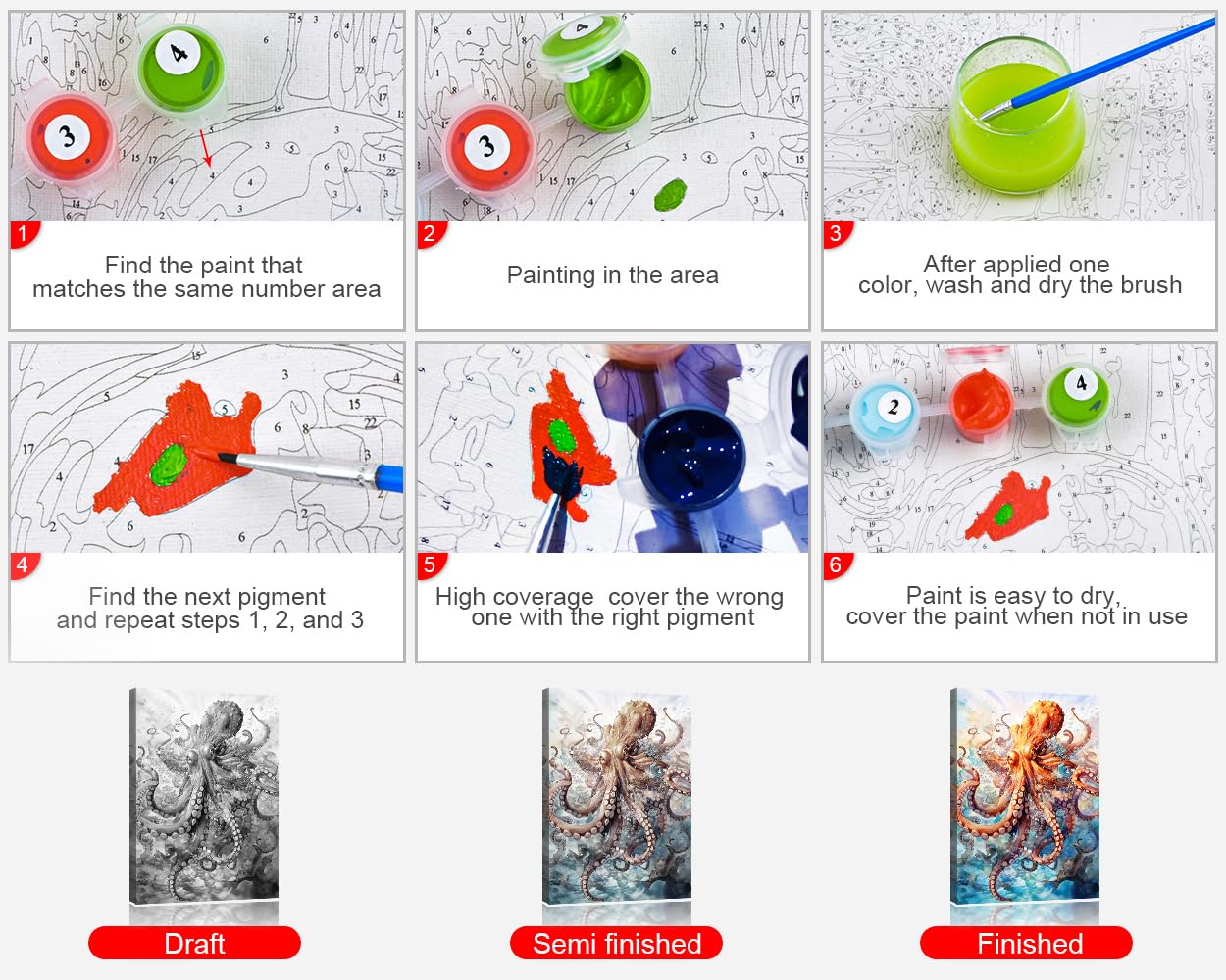 - No Paint Mixing: Paint by number for adult uses a coverable acrylic paint, can be directly colored, no need to add water for blending. When you used the wrong color accidentally, just covered with right color pigment.