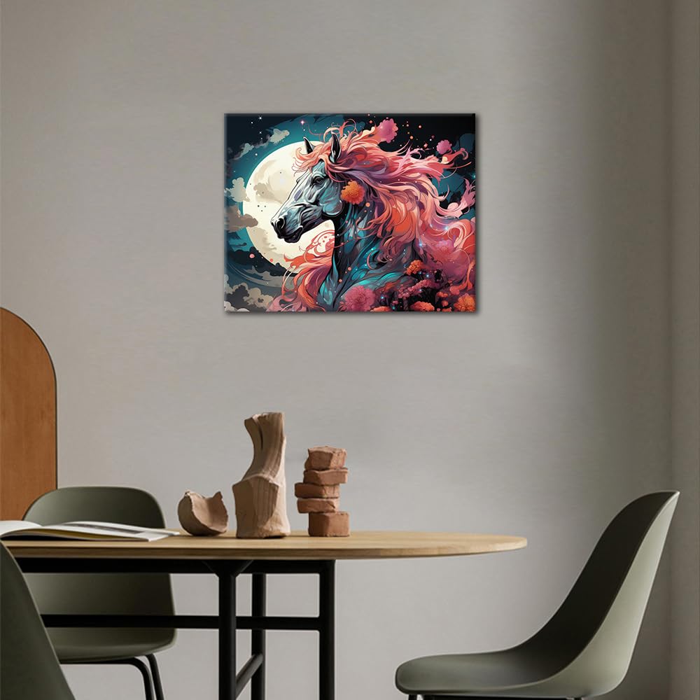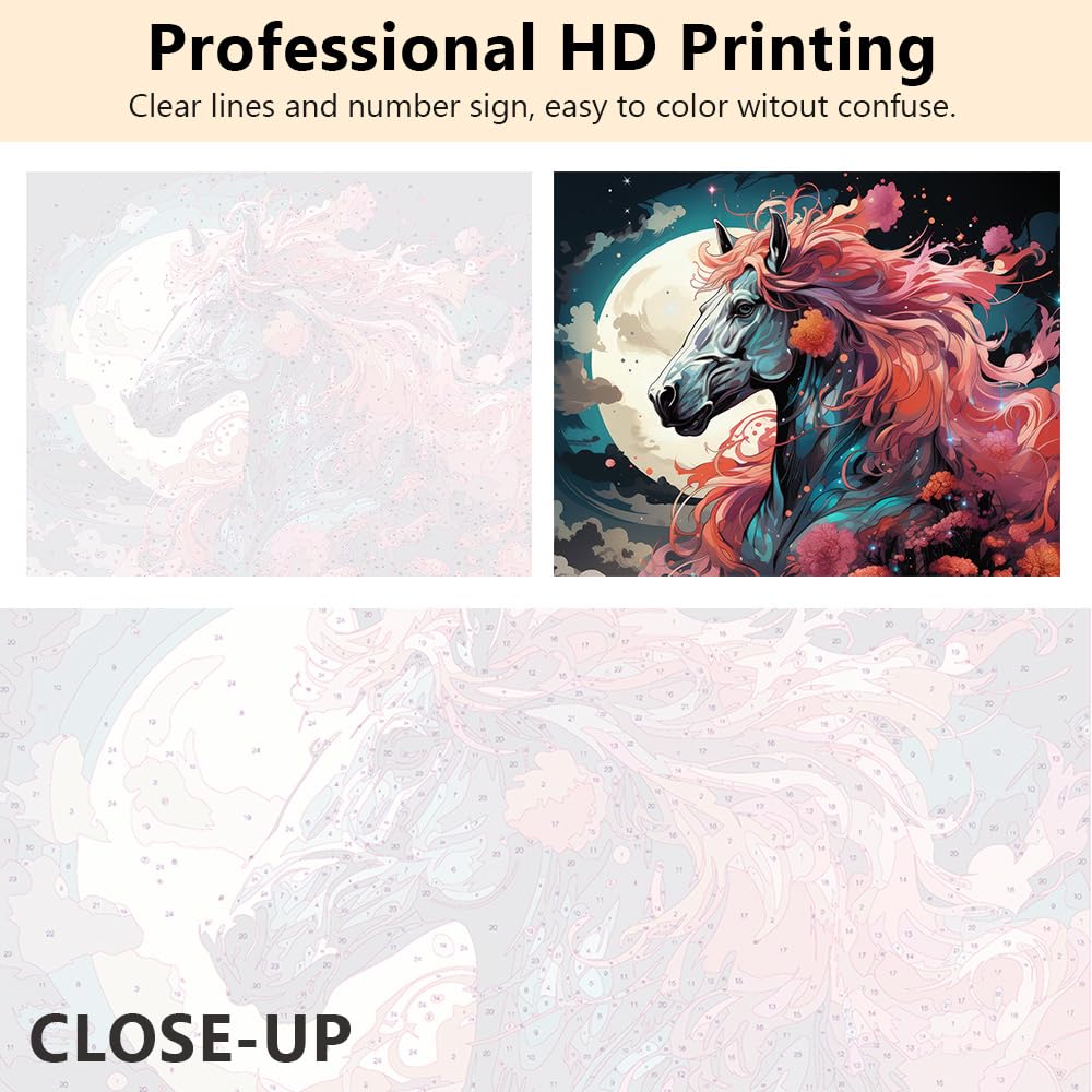 TUMOVO Paint by Numbers for Adults Moon, Flowers and White Horses Paint Number Kits Night Sky Adult Paint by Number Animals Adult Paint by Number Kits DIY Oil Painting Kits, 16 x20 Inch