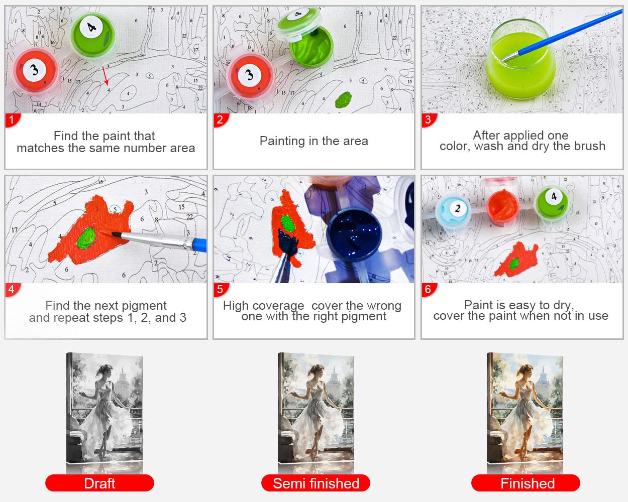 - DIY ARTS CRAFTS: You can follow the numbers and apply paint to complete the oil painting. Or you can mix colors to paint your own style DIY paint by numbers, and you will complete a unique painting by yourself.