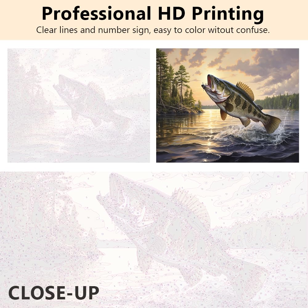 TUMOVO Paint by Numbers Kit for Adults Largemouth Bass Paint by Numbers for Adults Fish Jumping Out of Water Painting Adult Paint by Number Kits on Canvas Oil Painting Art Crafts 16x20 in