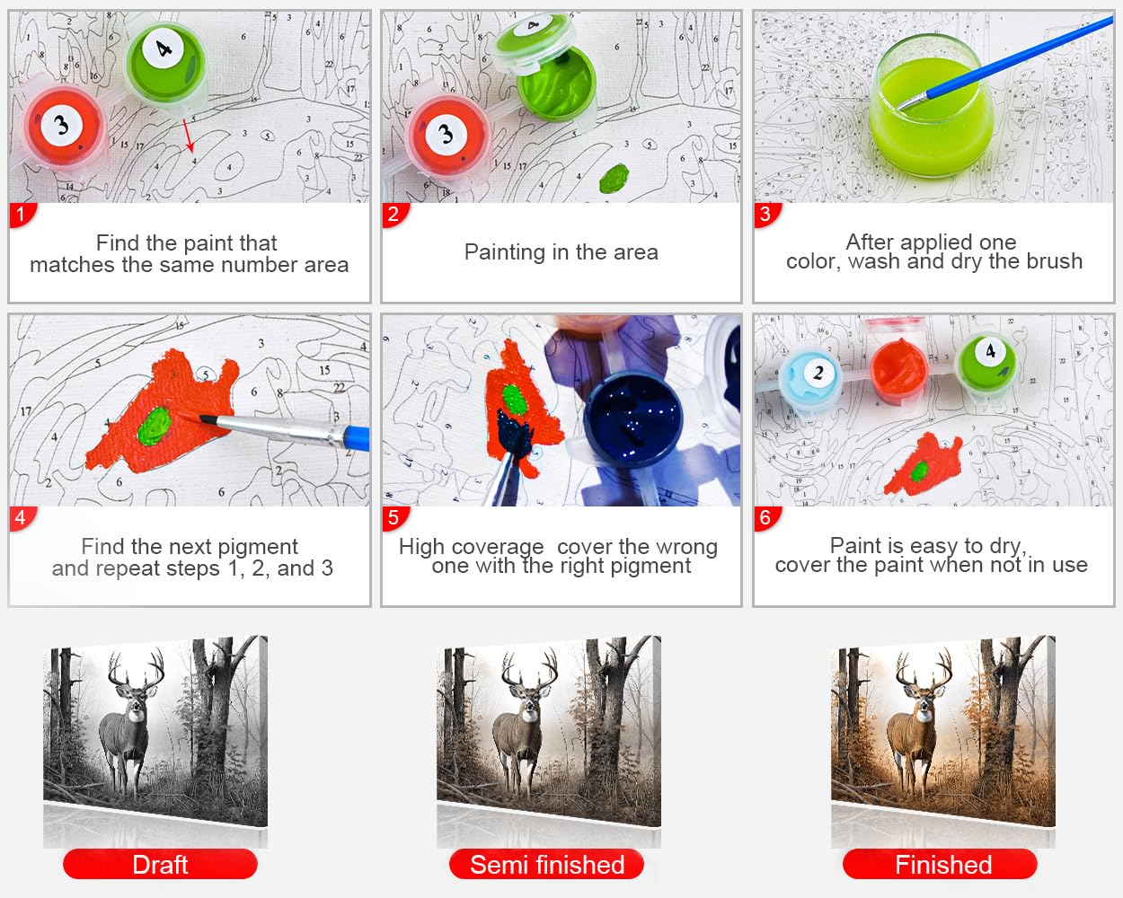 - 🎨 EASY TO PAINT:Doesn't matter you are an oil painting beginner or an expert. Age and skill level doesn't matter! With the prepainted corresponding color blocks and label numbers, you can easily to finish a masterpiece in a shorter time.