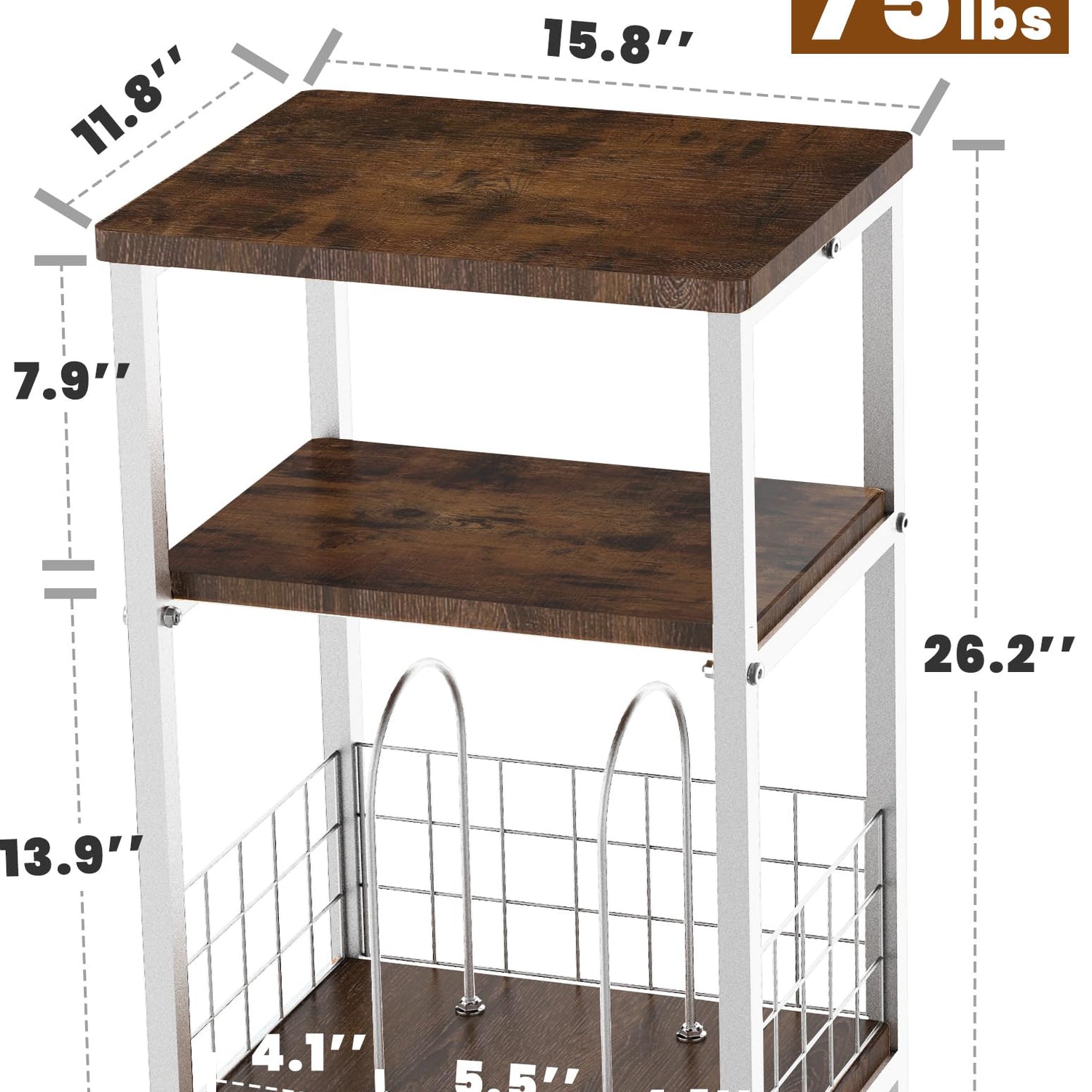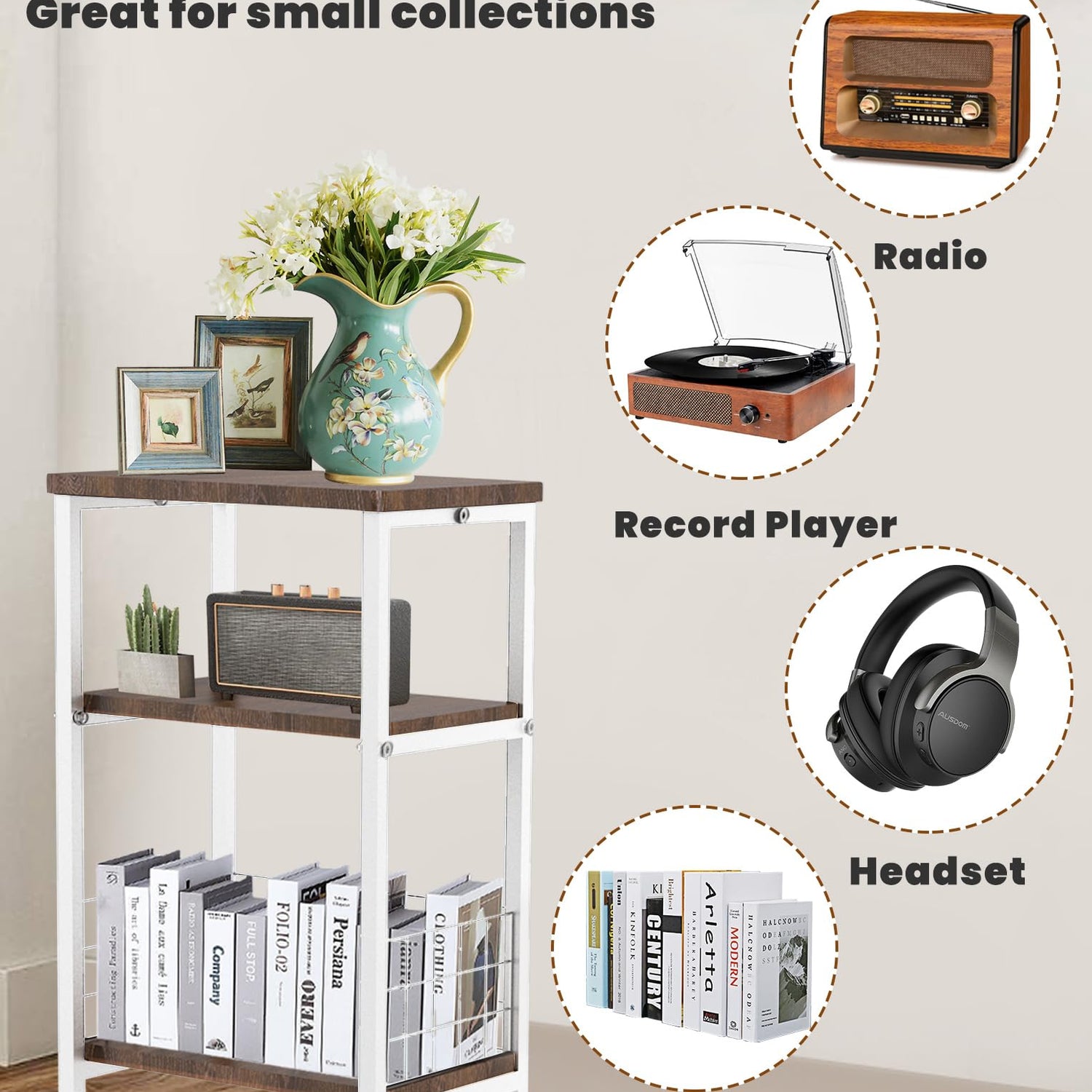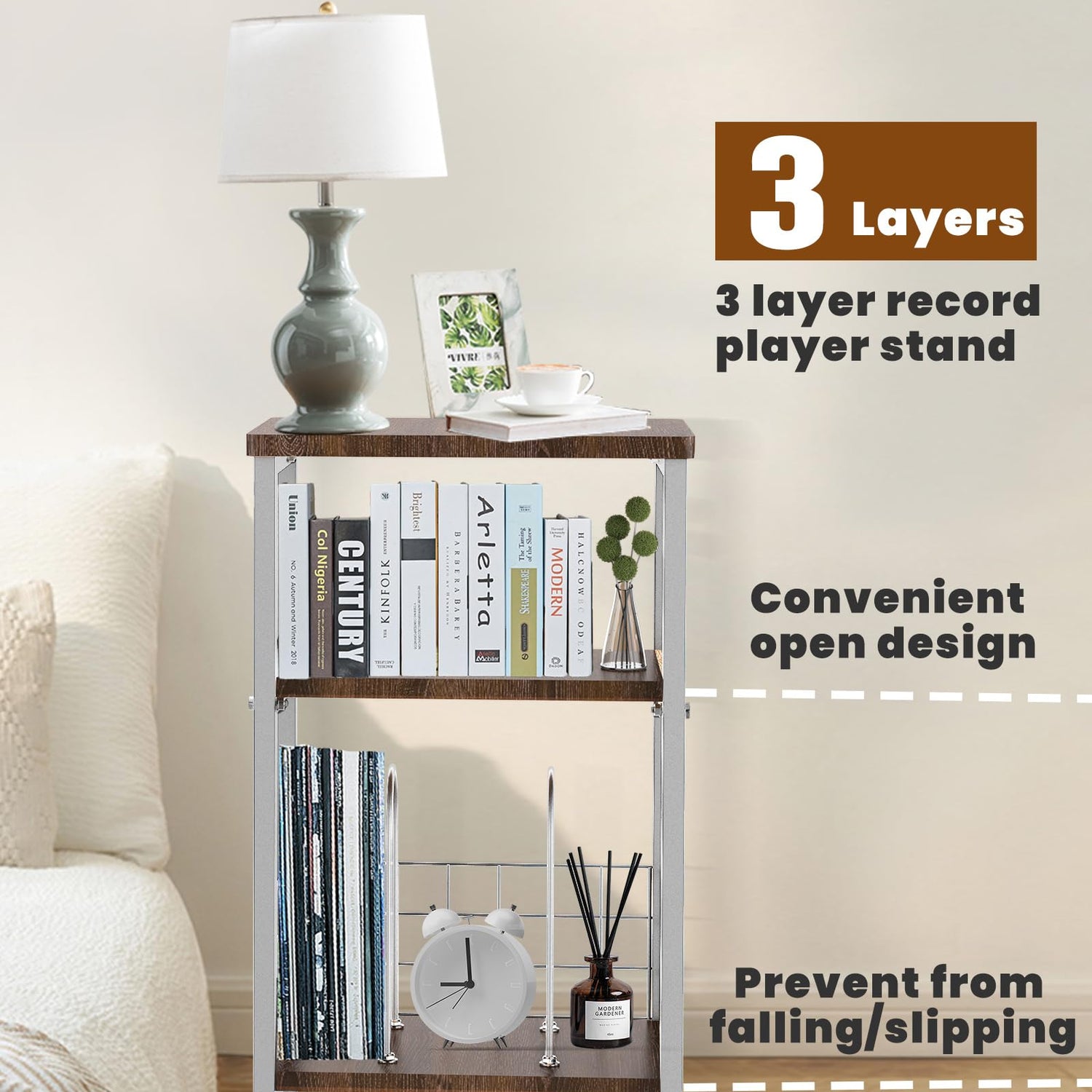 Tuohours Record Player Stand, 3 Tier End Side Table with Vinyl Record Storage Basket, Turntable Table up to 100 Albums Record Shelf Display Holder Cabinet for Living Room, Bedroom, Office