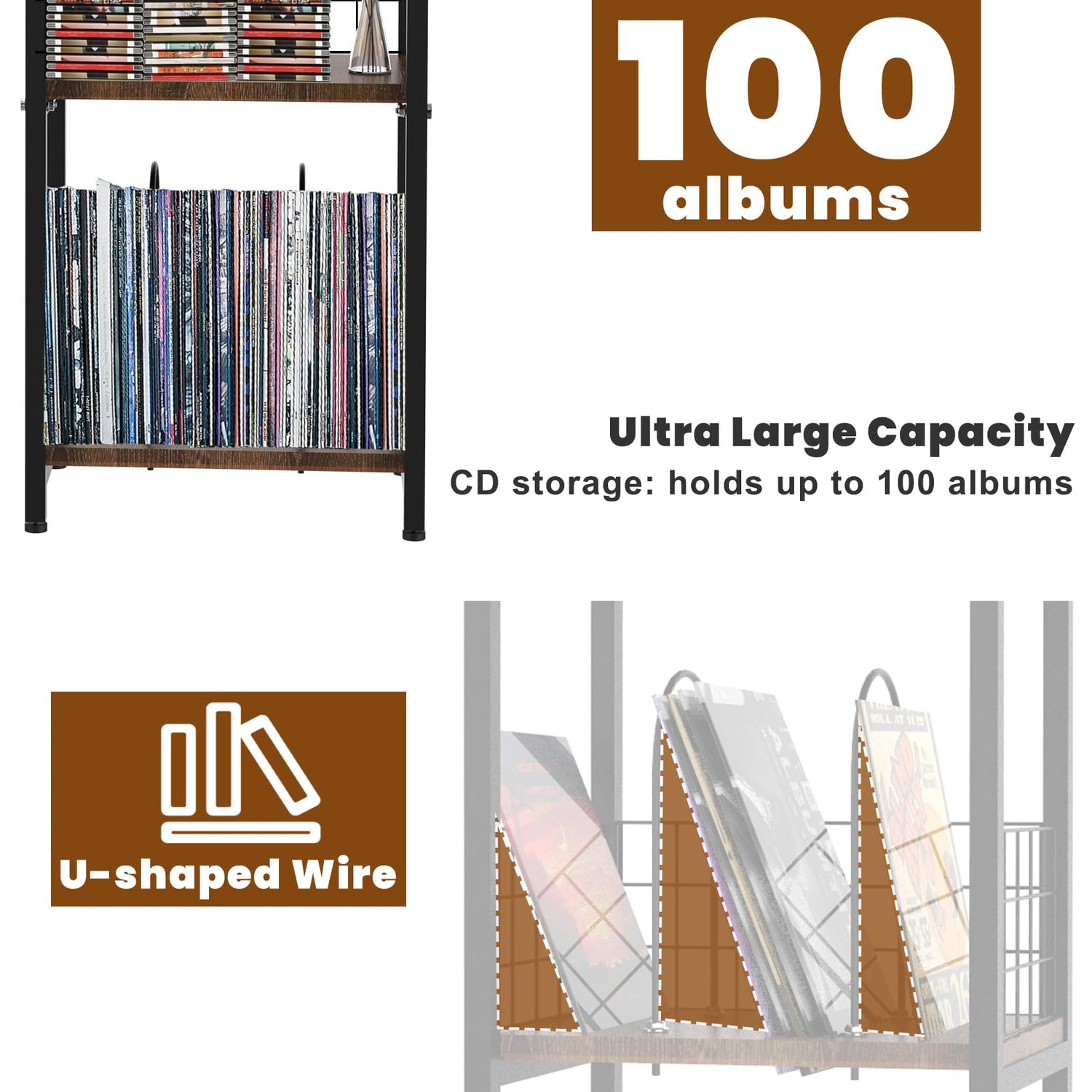 CD Storage Quantity: Hold up to 100 albums