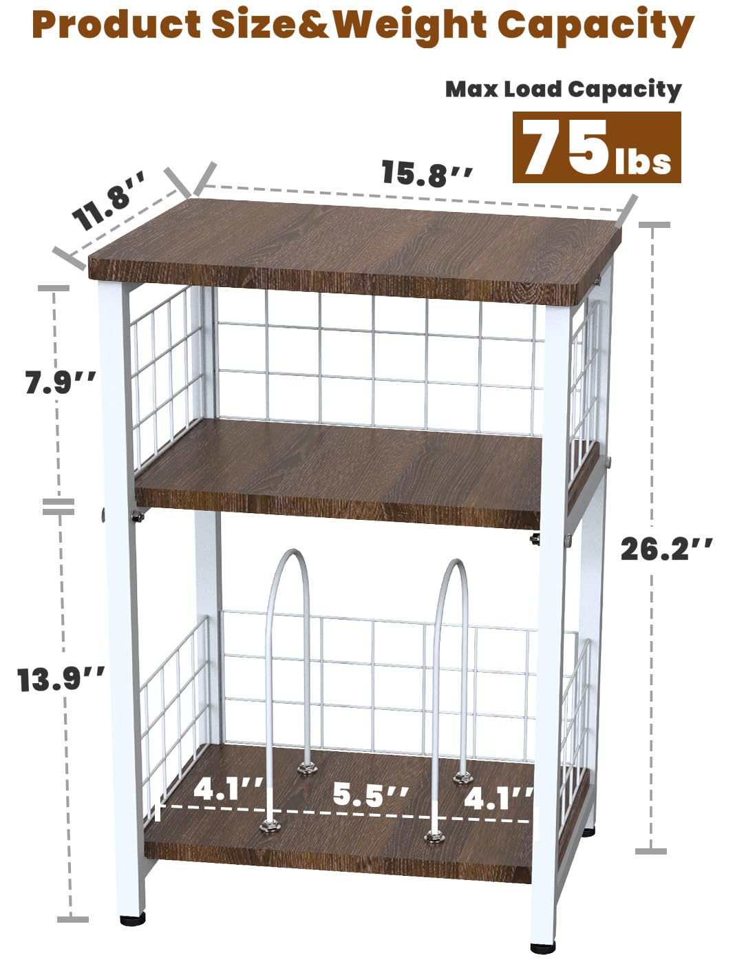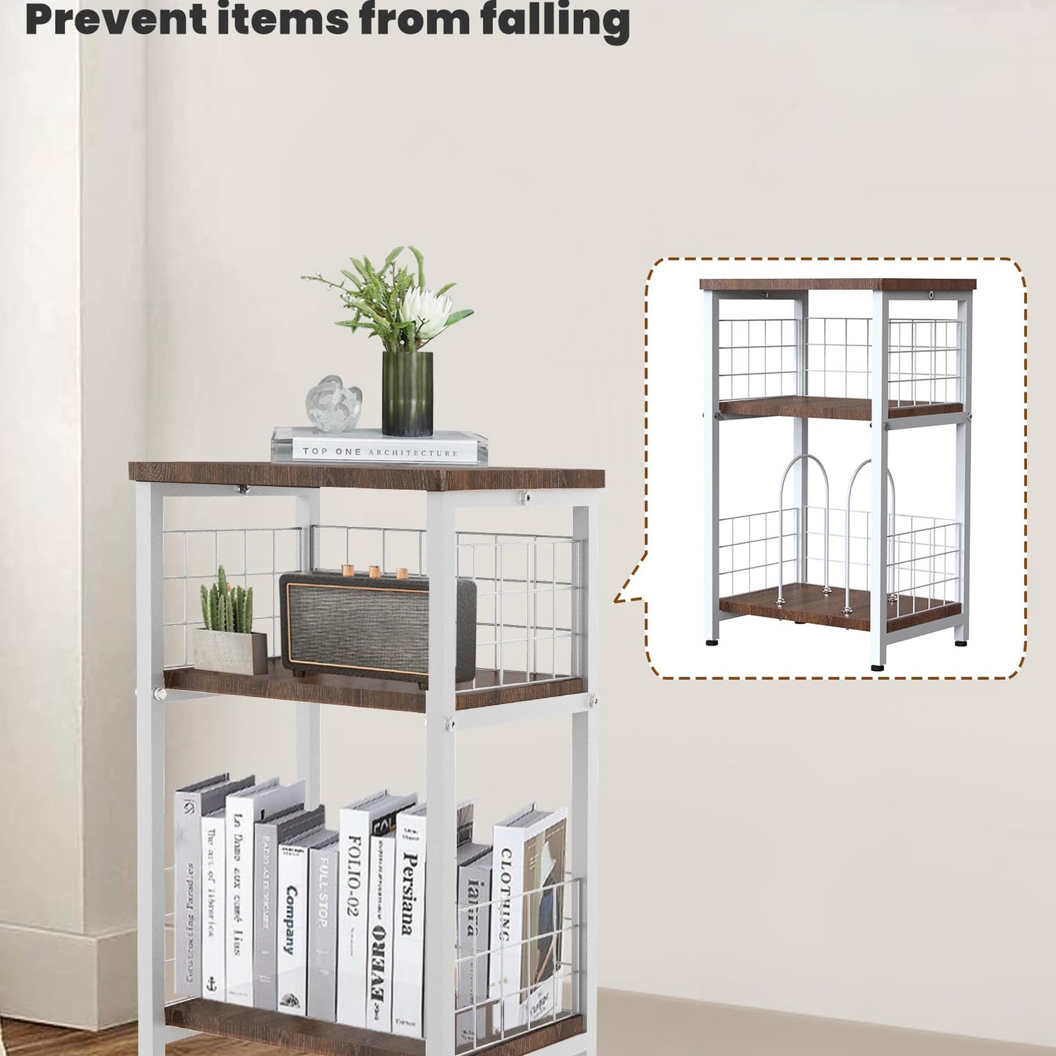 Tuohours Record Player Stand, 3 Tier End Table with Double Layer Iron Wire Mesh Turntable Stand Vinyl Record Table Storage Up to 100 Albums, Nightstand Small Side Table for Living Room Bedroom, White